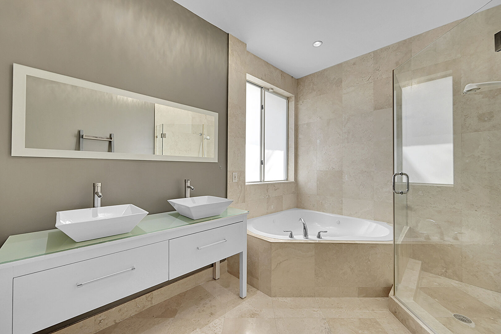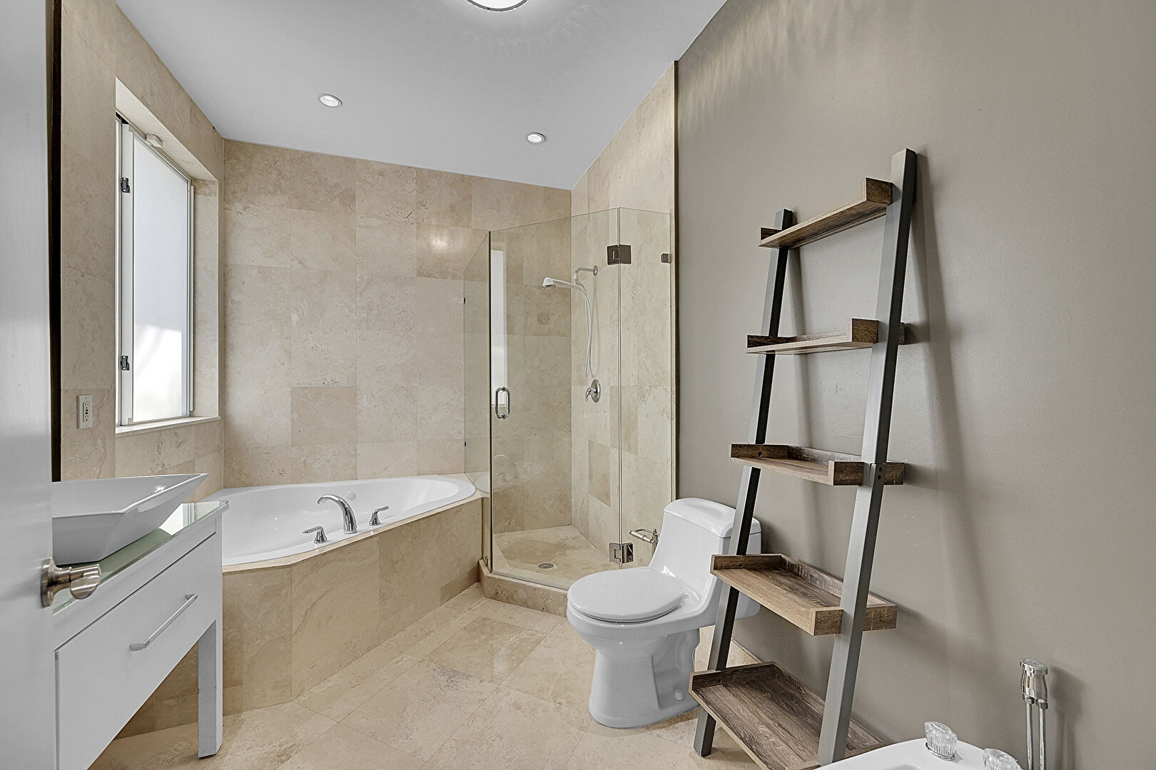 Bidet, Double Vanity, Drywall, Full Bathroom, Natural Light, Recessed Lighting, Tile Wall, Vanity, Tile Floor