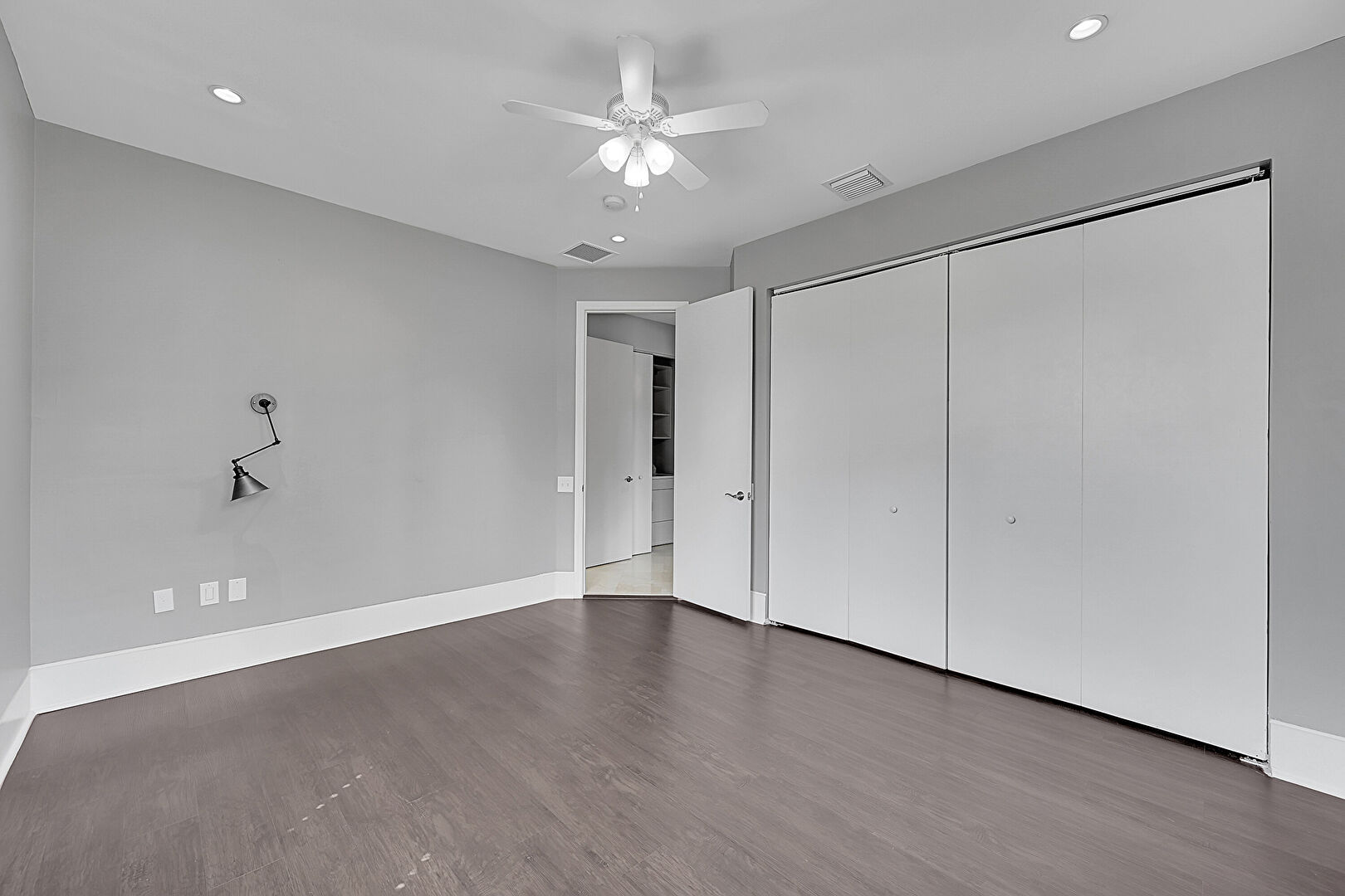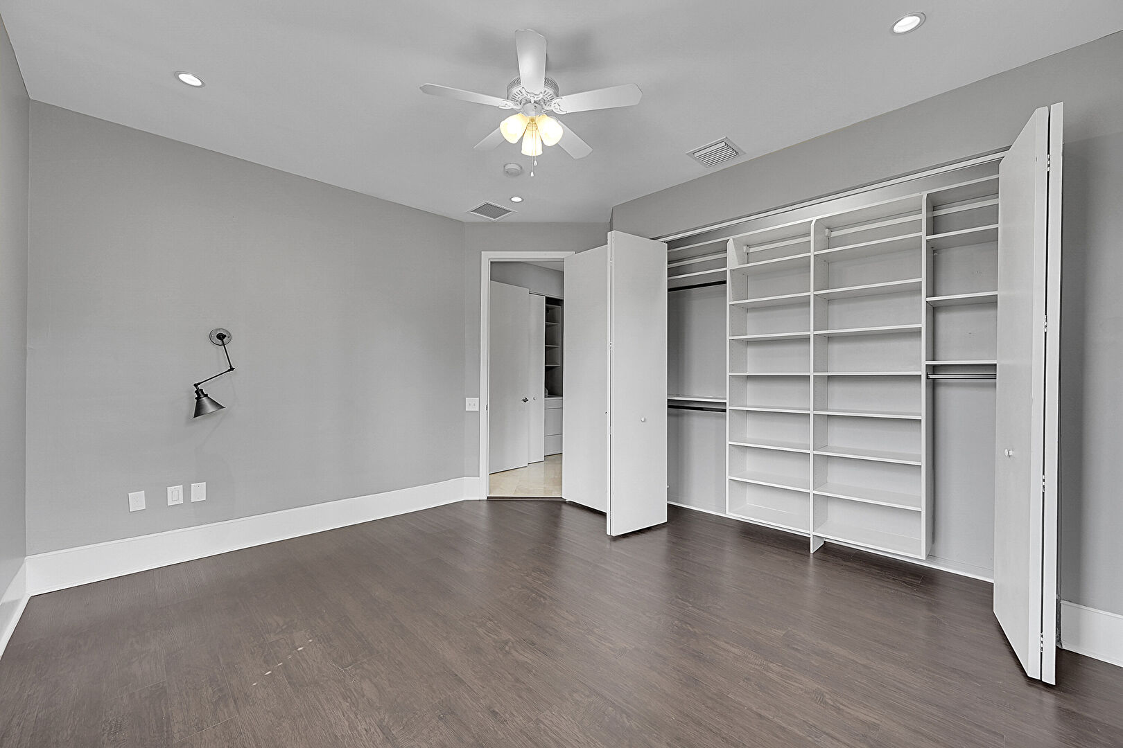 Baseboards Wall, Ceiling Fan, Closet, Drywall, Recessed Lighting, Vent, Wood Finish Floor, Closet, Natural Light, Recessed Lighting, Wood Finish Floor
