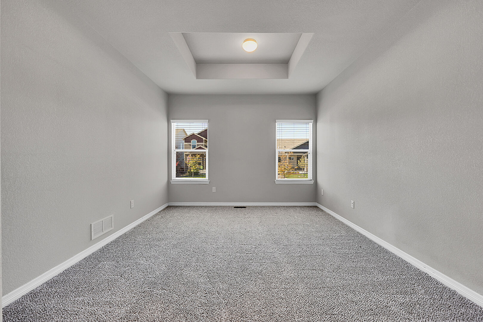 Baseboards Wall, Carpet, Natural Light, Textured Wall, Tray Ceiling, Vent