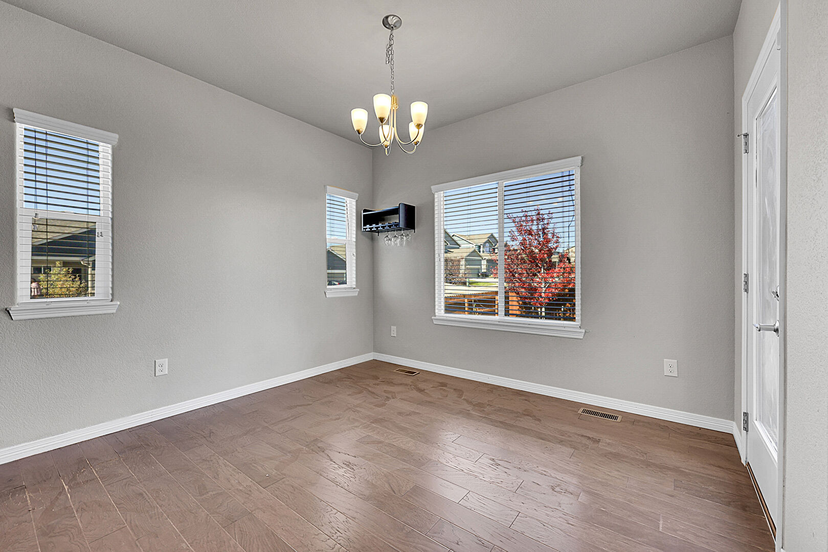 Baseboards Wall, Drywall, Natural Light, Notable Chandelier, Wood Finish Floor, Vent