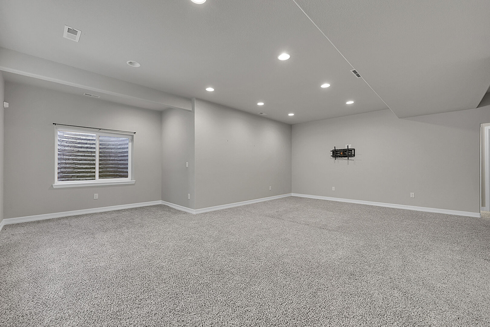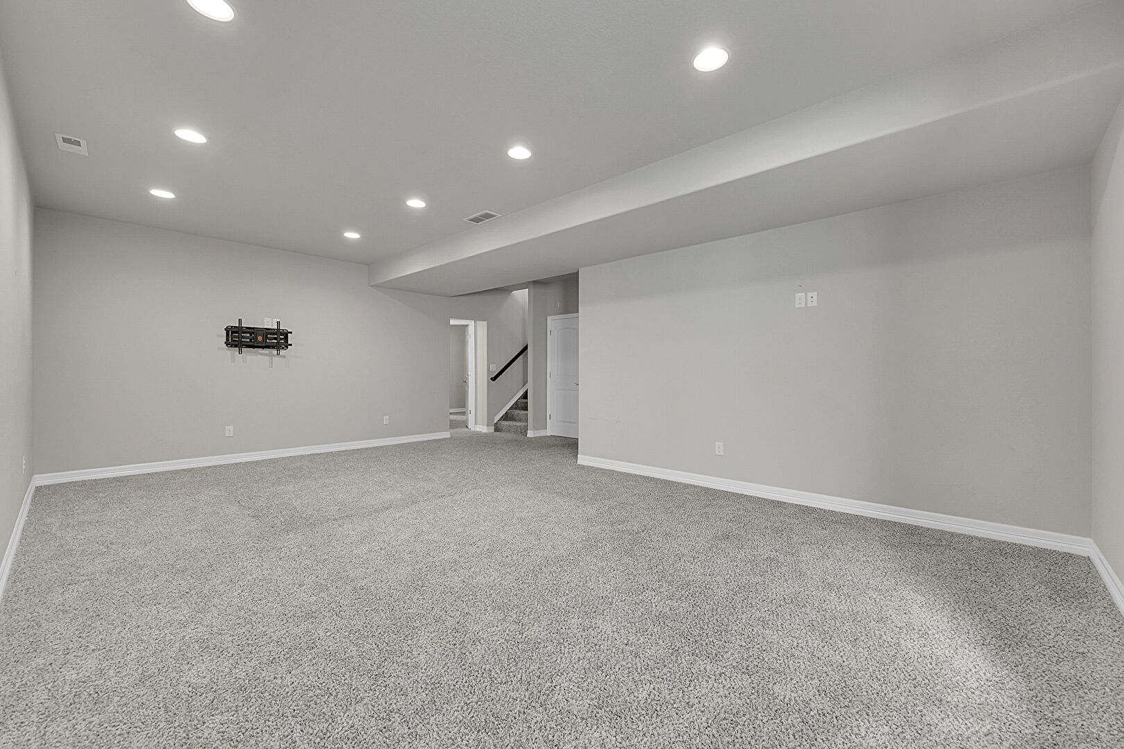 Baseboards Wall, Basement, Carpet, Drywall, Natural Light, Recessed Lighting, Stairs, Textured Ceiling, Vent, Baseboards Wall, Carpet, Drywall, Recessed Lighting