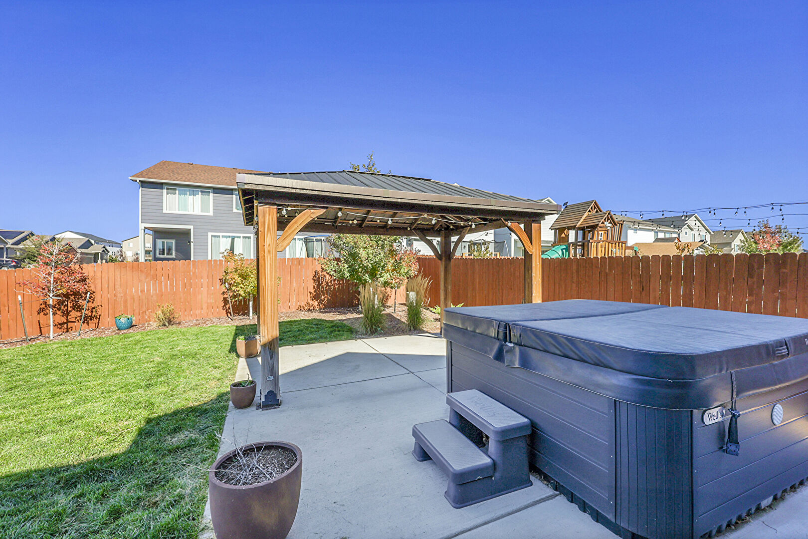 Fence, Gazebo, Hot Tub, Lawn, Patio, Lawn, Residential View