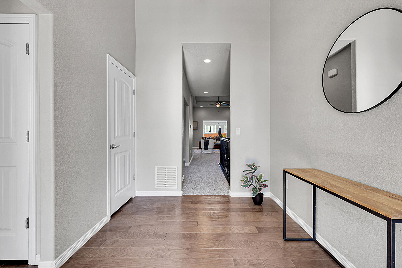 Baseboards Wall, Drywall, High Ceiling, Natural Light, Recessed Lighting, Vent, Wood Finish Floor