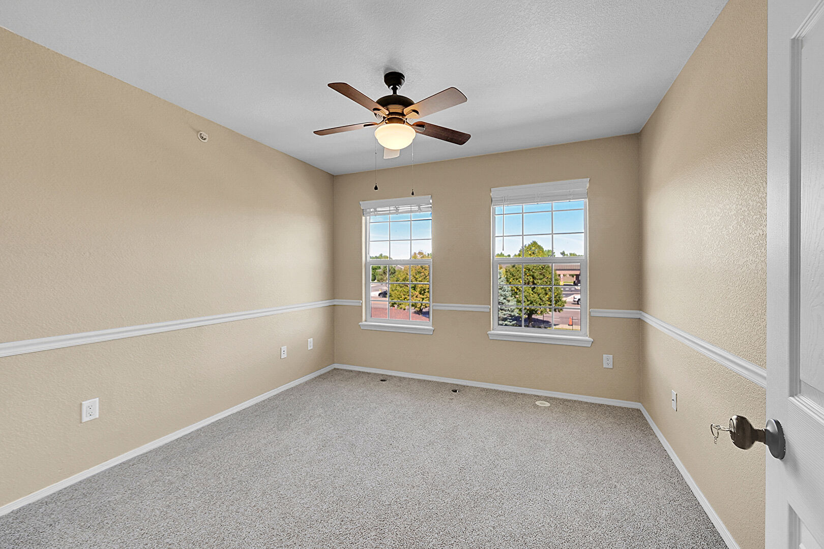 Baseboards Wall, Carpet, Ceiling Fan, Drywall, Natural Light, Textured Ceiling, Textured Wall, Carpet, Closet