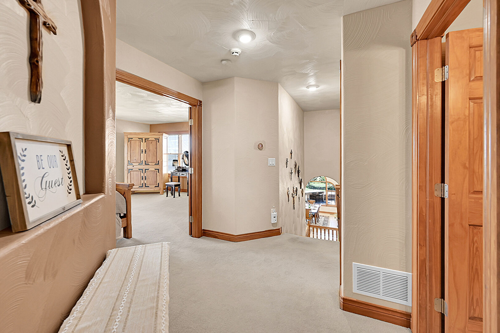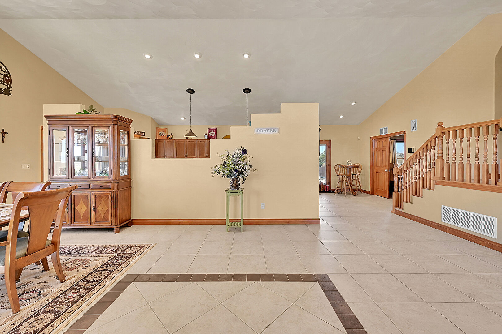 High Ceiling, Inlaid Floor, Natural Light, Recessed Lighting, Tile Floor, Stairs