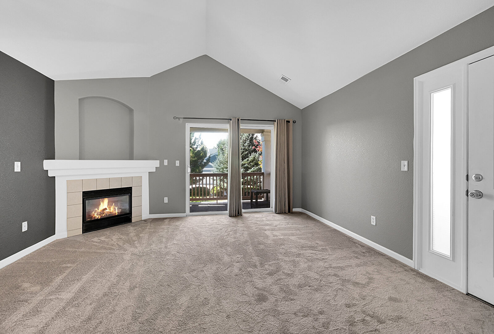 Baseboards Wall, Carpet, Cathedral Ceiling, Drywall, Fireplace, High Ceiling, Natural Light, Notable Chandelier, Sump Pump, Textured Wall, Vaulted Ceiling, Vent, Baseboards Wall, Carpet, Cathedral Ceiling, Fireplace, Vaulted Ceiling