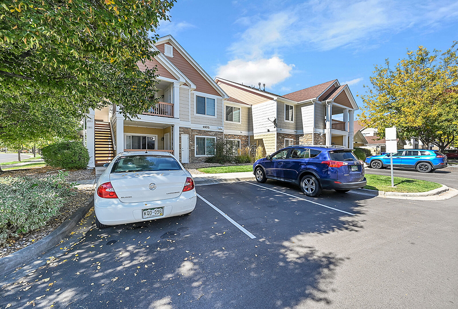 Balcony, Downspout, Gutters, Horizontal Siding, Parking Lot, Porch, Satellite Dish, Shake Shingle Siding, Stairs, Stone Siding, Residential View