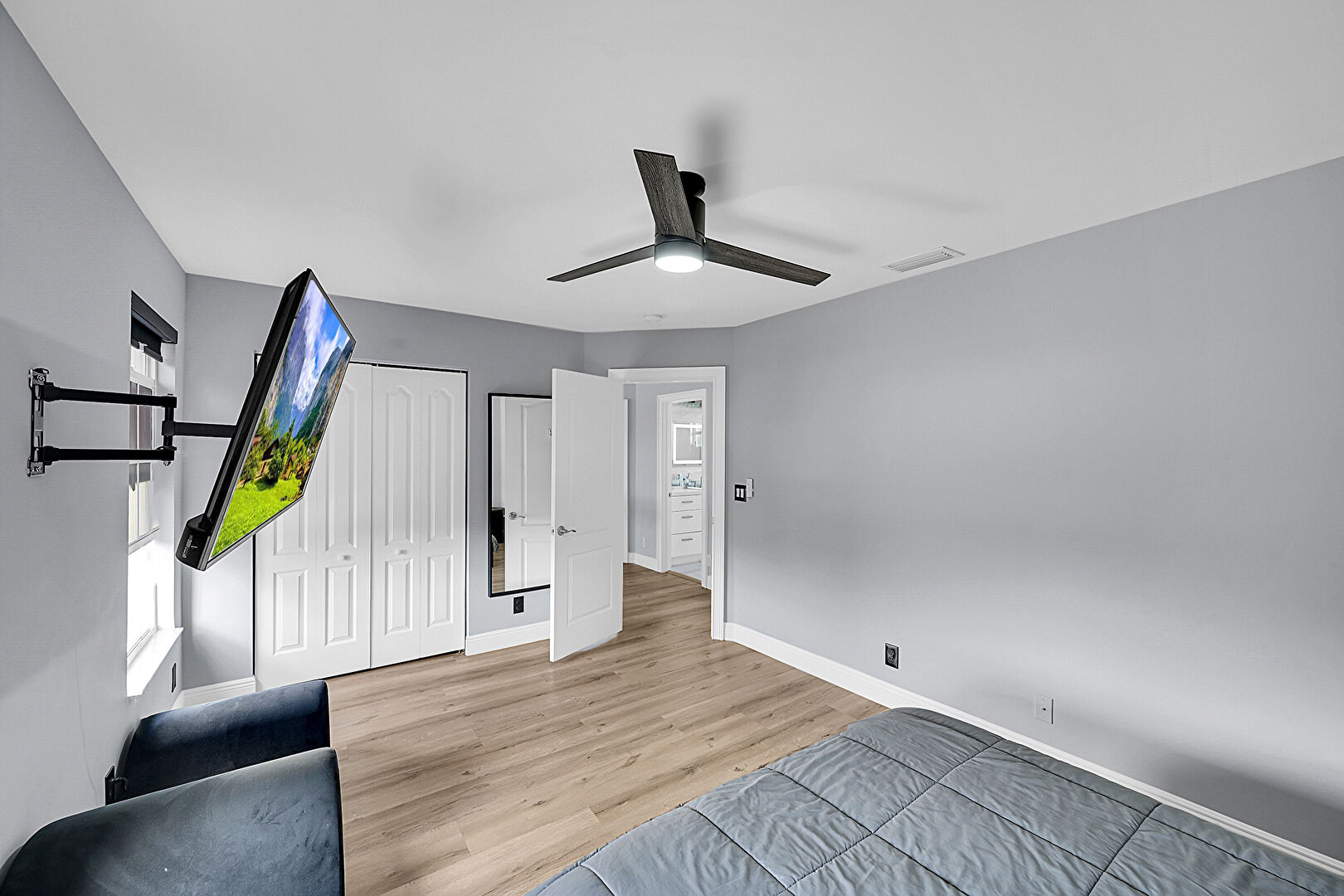 Baseboards Wall, Ceiling Fan, Closet, Drywall, Vent, Wood Finish Floor, Natural Light