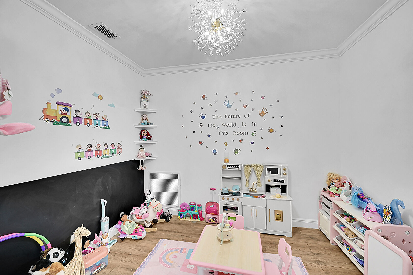 Baseboards Wall, Crown Molding, Drywall, Natural Light, Notable Chandelier, One Wall Kitchen, Recessed Lighting, Stone Wall, Vent, Waterfront, Wood Finish Floor, Baseboards Wall, Crown Molding
