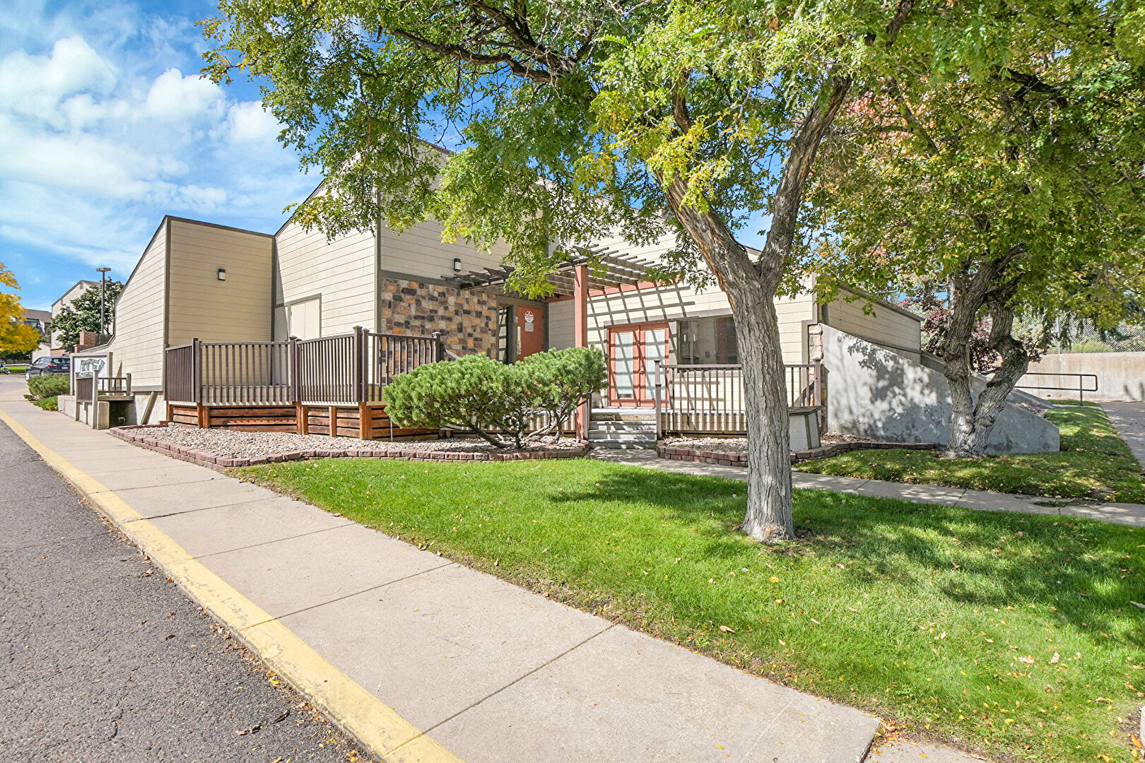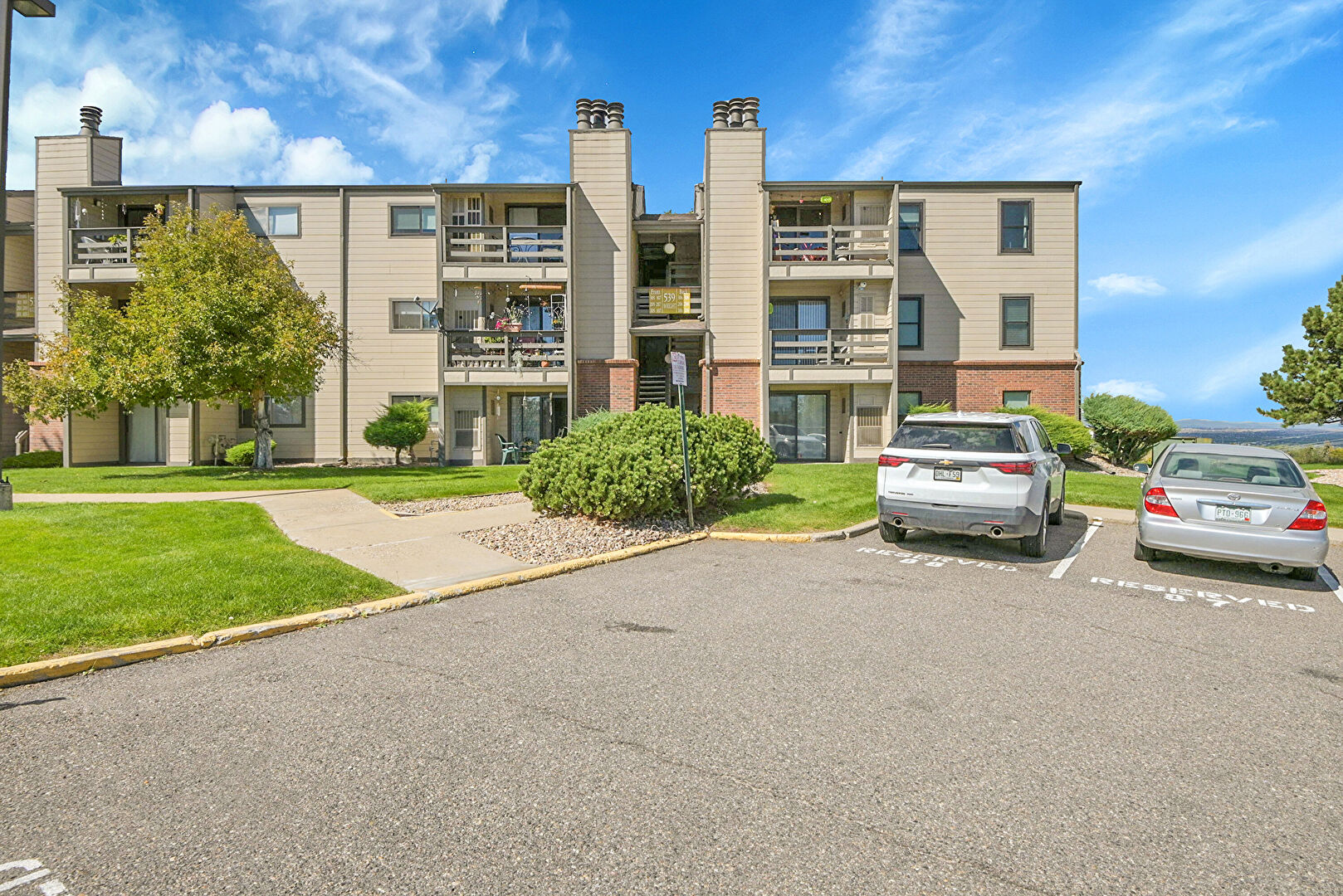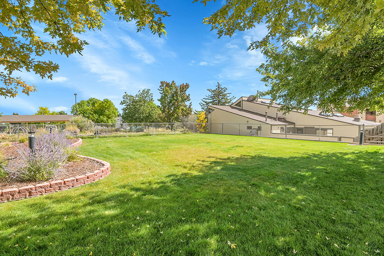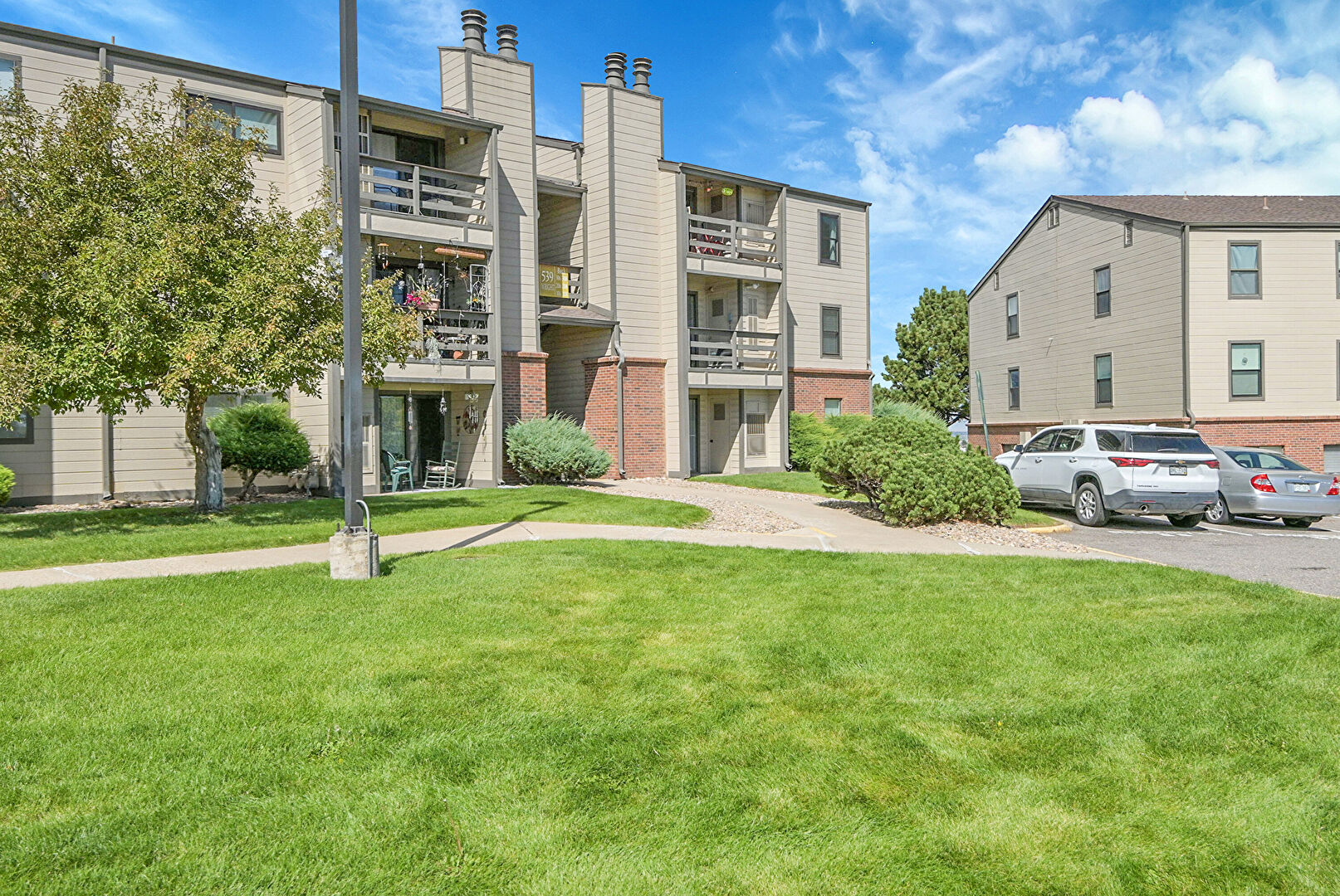 Apartment Complex View, Fence, Lawn, Deck, Parking Lot, Stairs