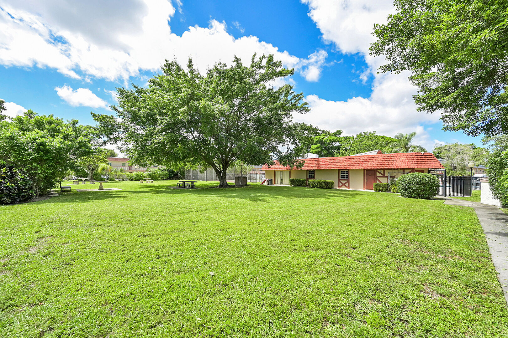 Apartment Complex View, Balcony, Fence, Lawn