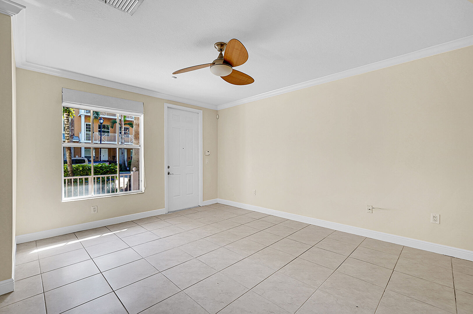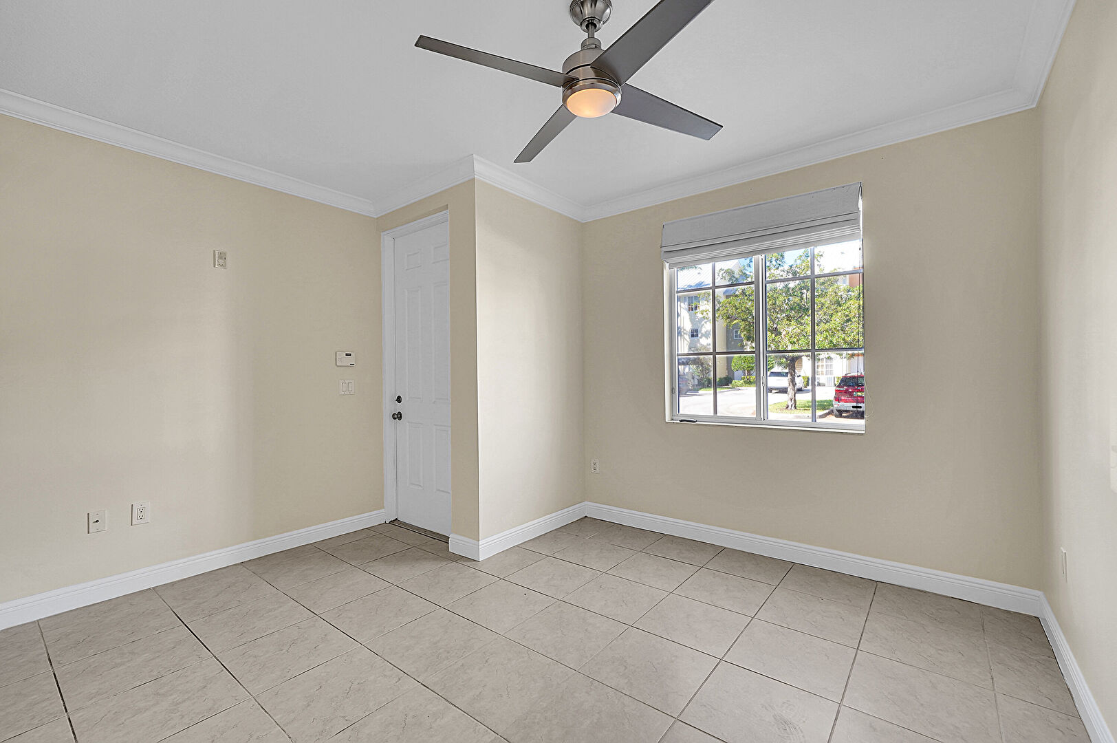 Baseboards Wall, Ceiling Fan, Crown Molding, Drywall, Natural Light, Tile Floor, Vent, Baseboards Wall, Textured Ceiling