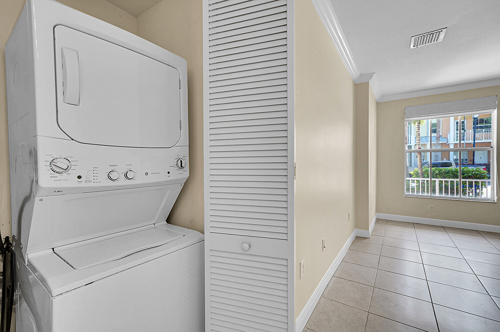 Baseboards Wall, Crown Molding, Drywall, Laundry, Natural Light, Vent, Tile Floor