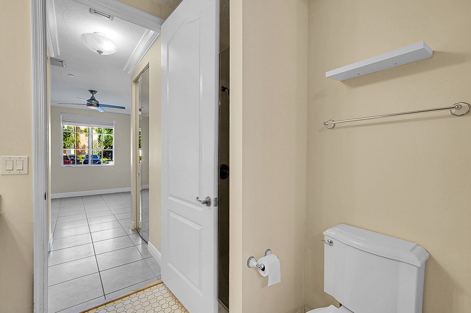 Baseboards Wall, Ceiling Fan, Crown Molding, Drywall, Half Bathroom, Natural Light, Textured Ceiling, Tile Floor, Vanity, Vent, Baseboards Wall, Ceiling Fan, Full Bathroom, Vent