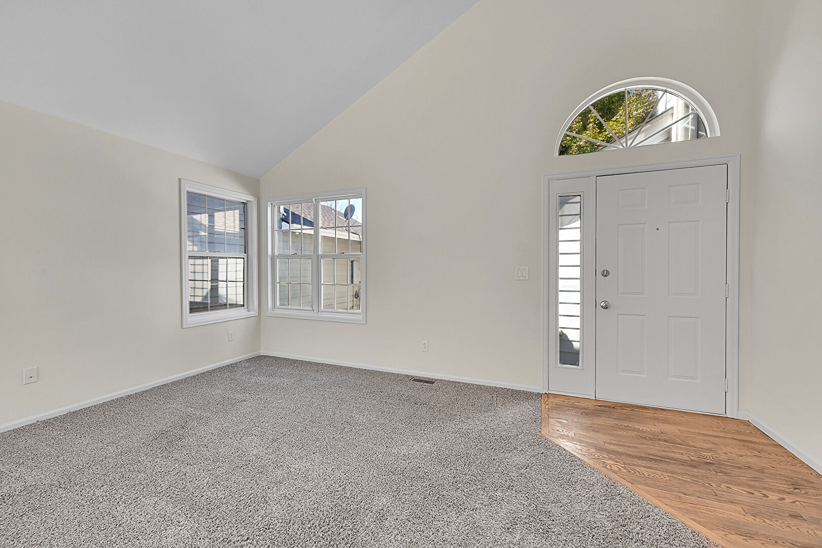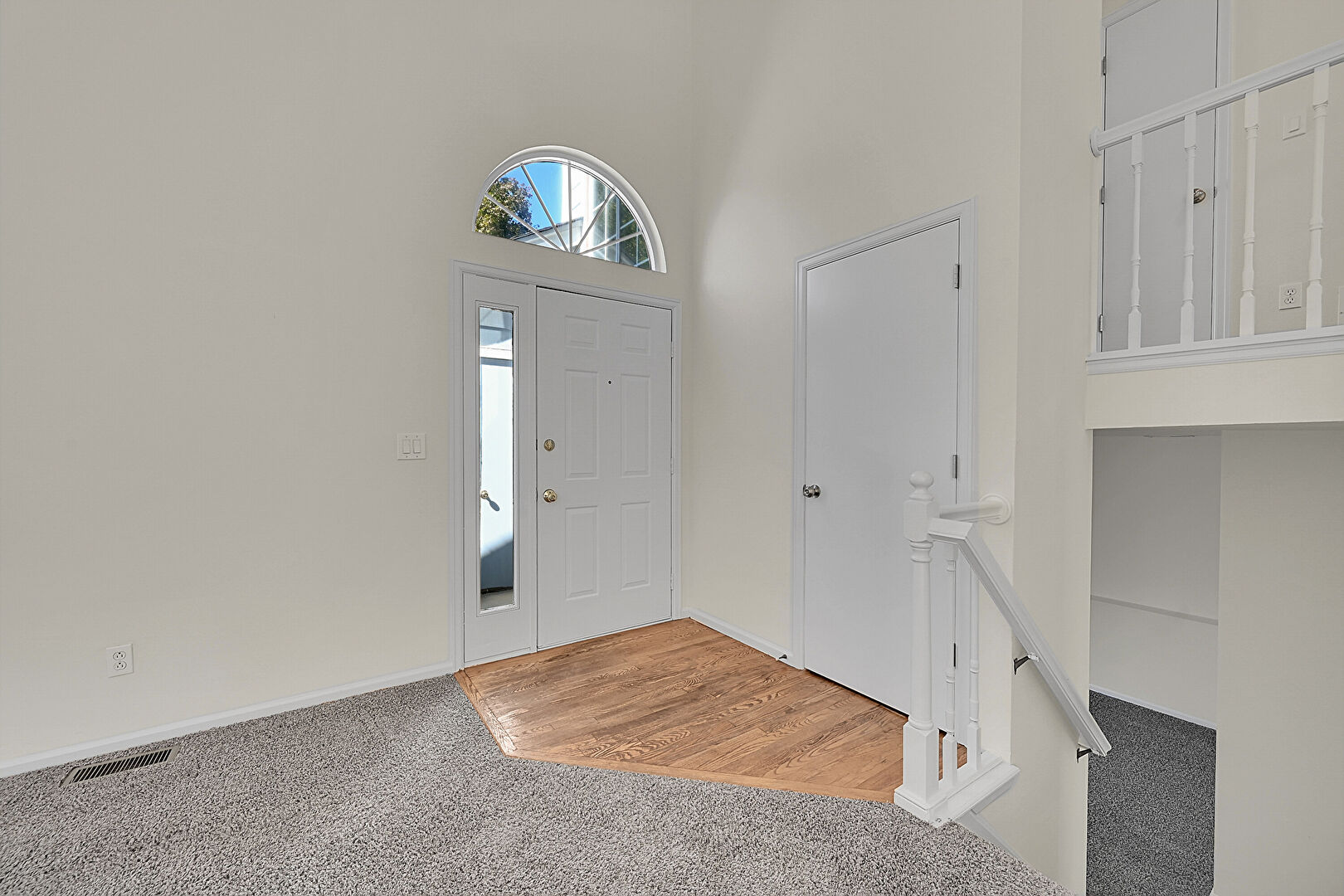 Baseboards Wall, Carpet, High Ceiling, Natural Light, Vent, Wood Finish Floor, Drywall