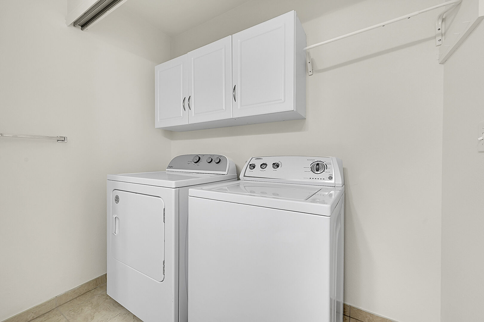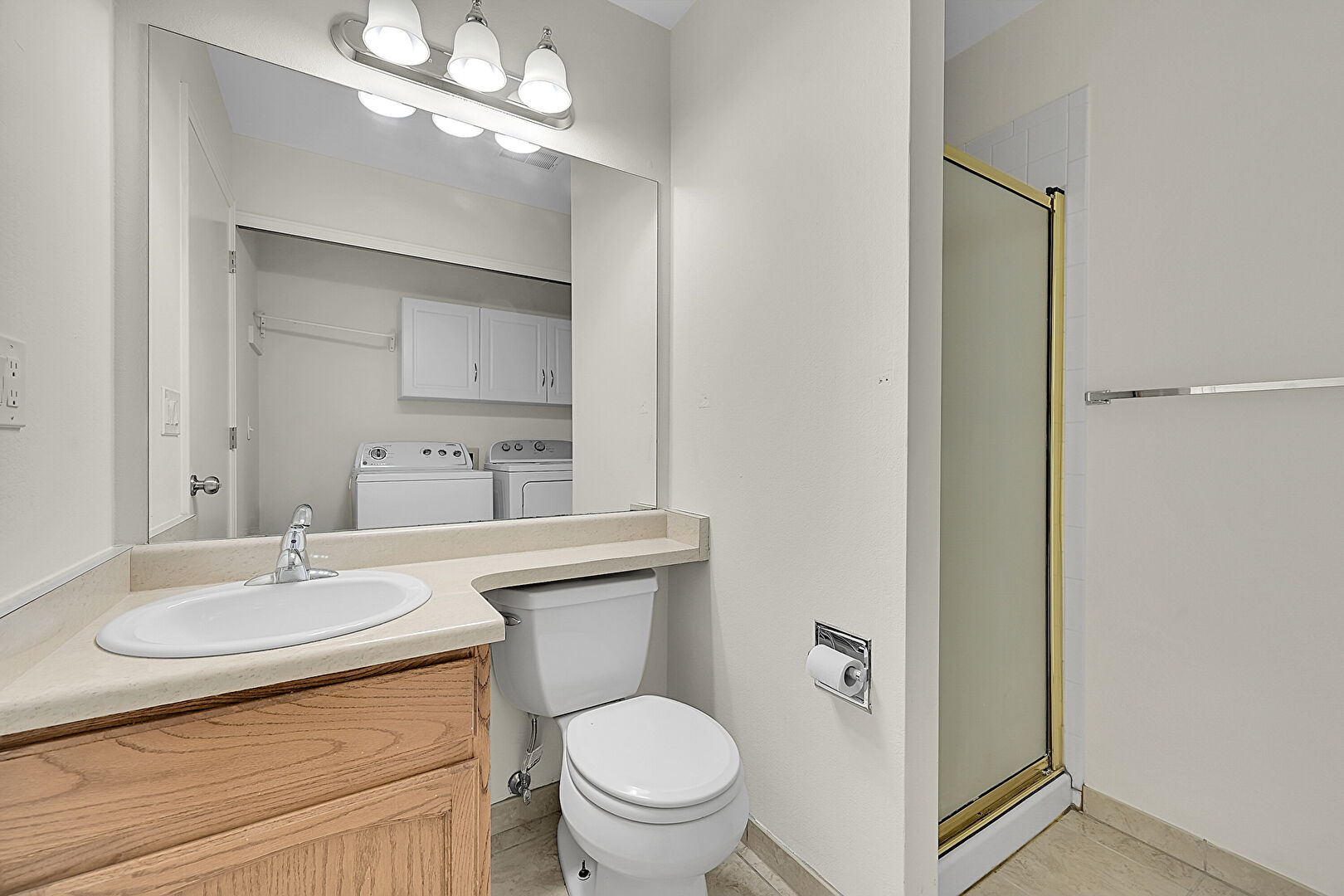 Baseboards Wall, Drywall, Full Bathroom, Tile Floor, Vanity, Laundry