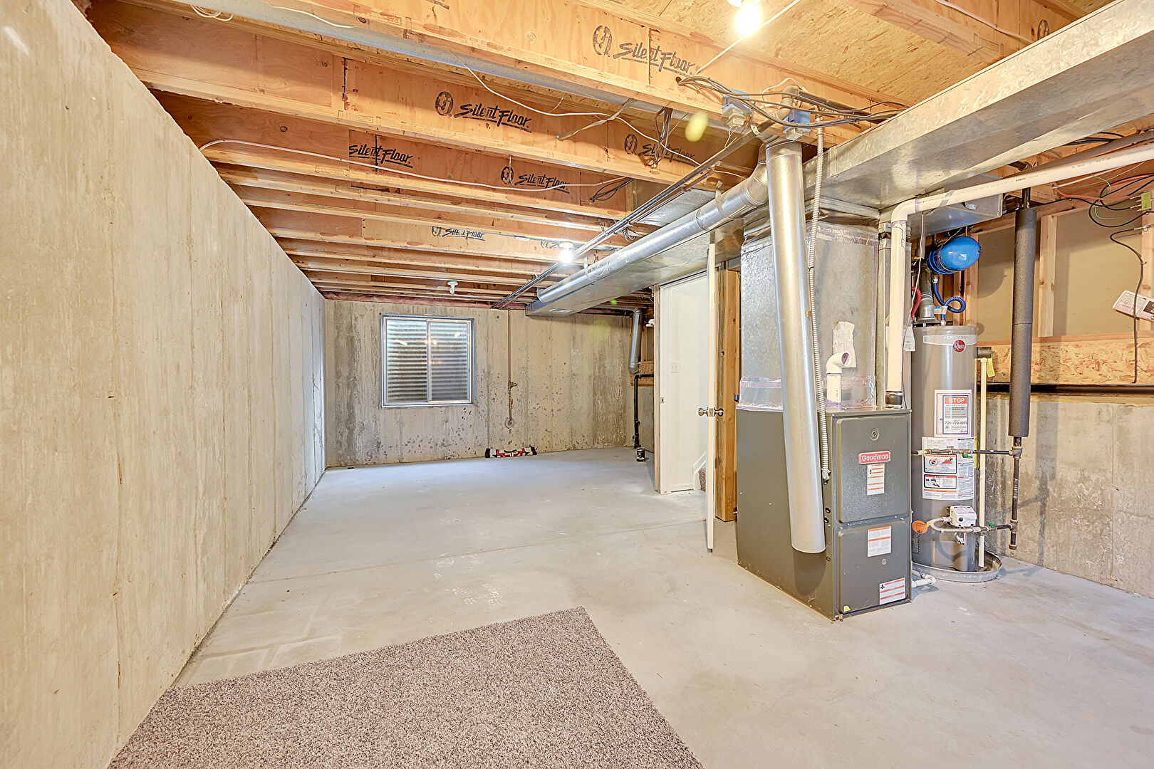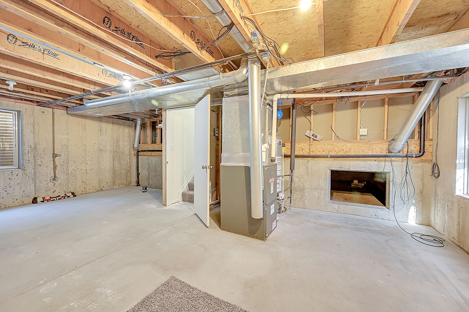 Basement, Concrete Foundation, Furnace, Natural Light, Stairs, Water Heater, Concrete Foundation, Furnace