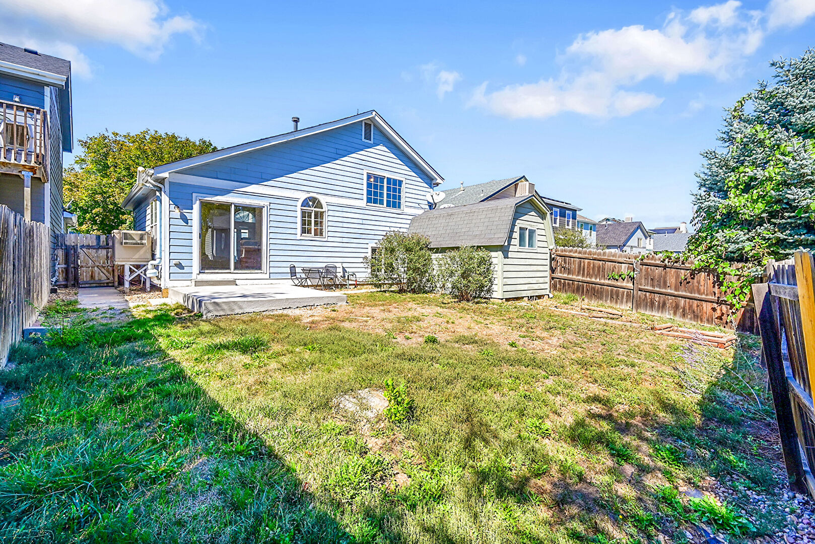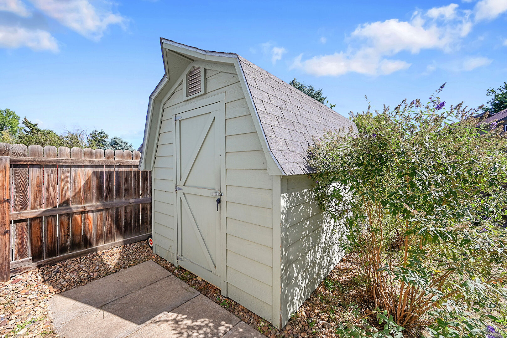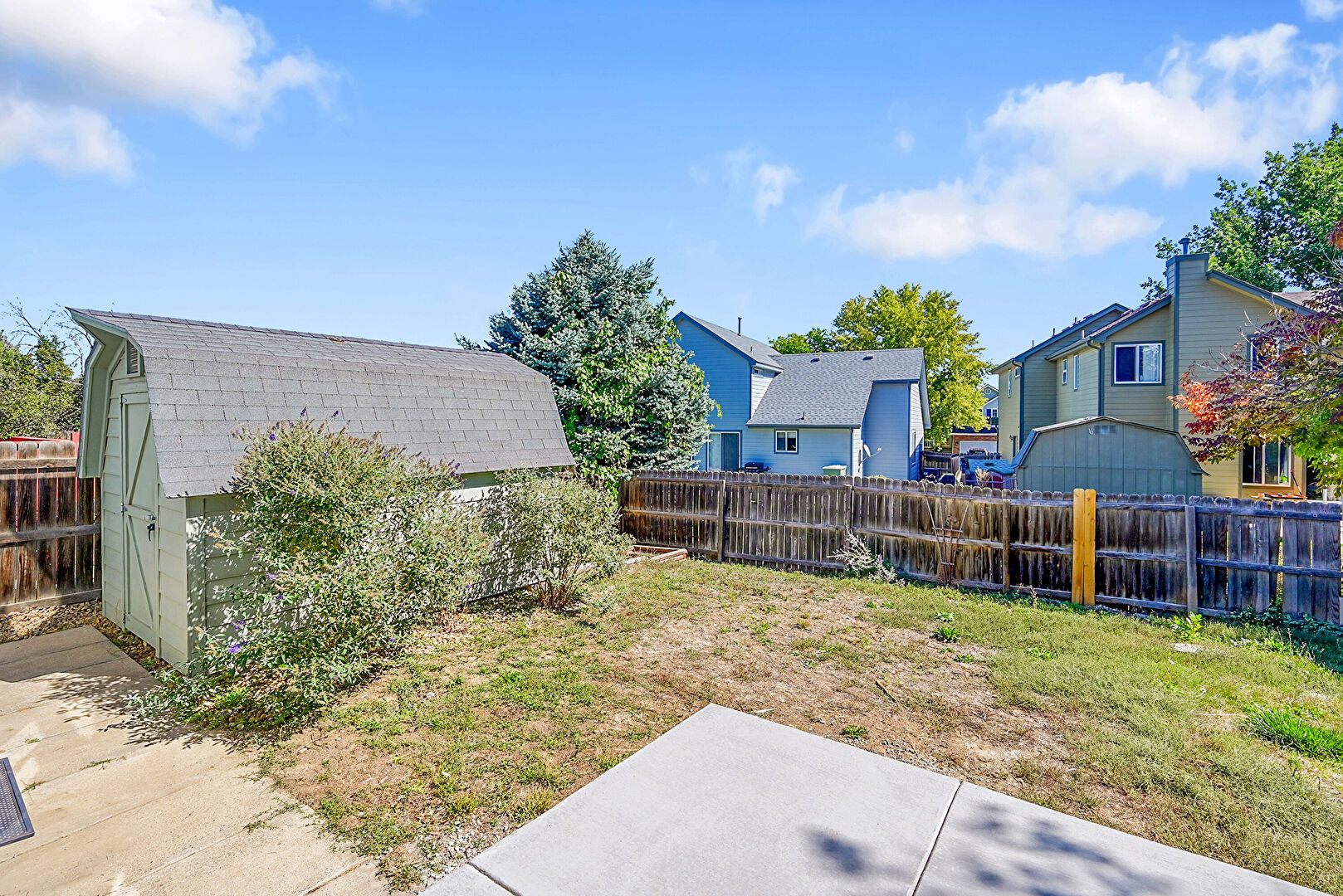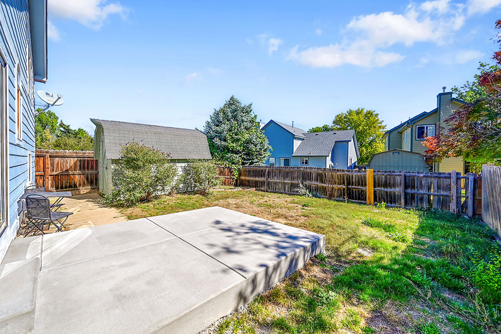 Fence, Lawn, Outdoor Structure, Patio, Residential View, Shed, Outdoor Structure, Satellite Dish