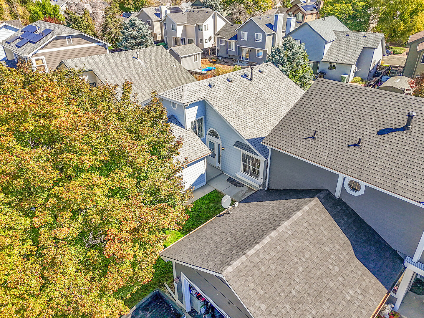 Downspout, Gutters, Horizontal Siding, Shingle Roof, Lawn