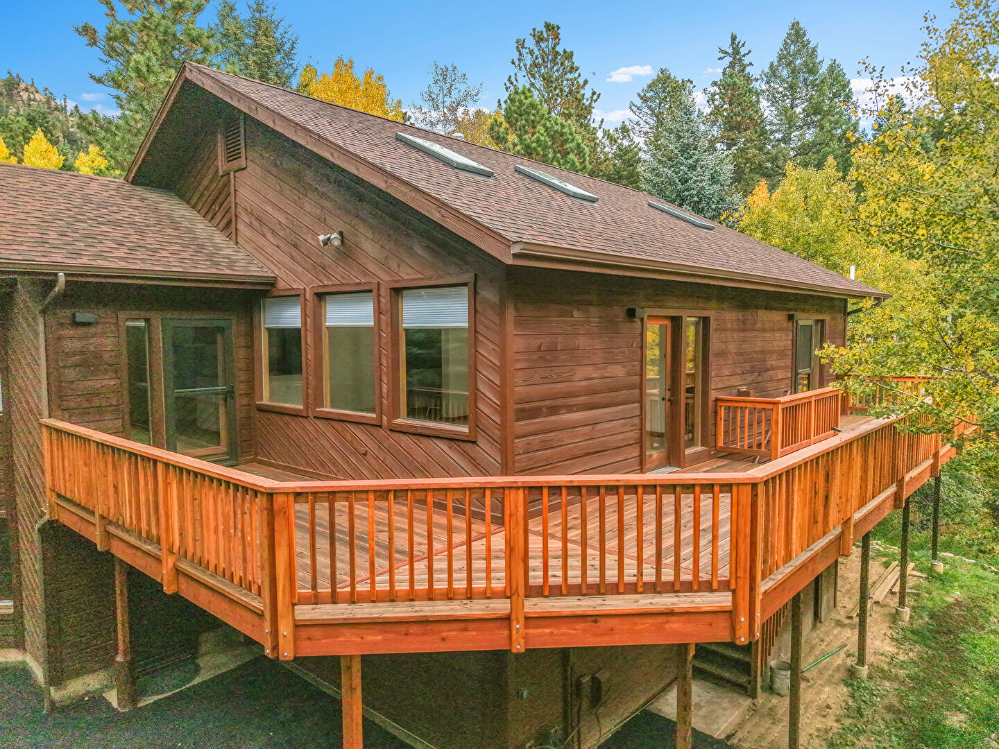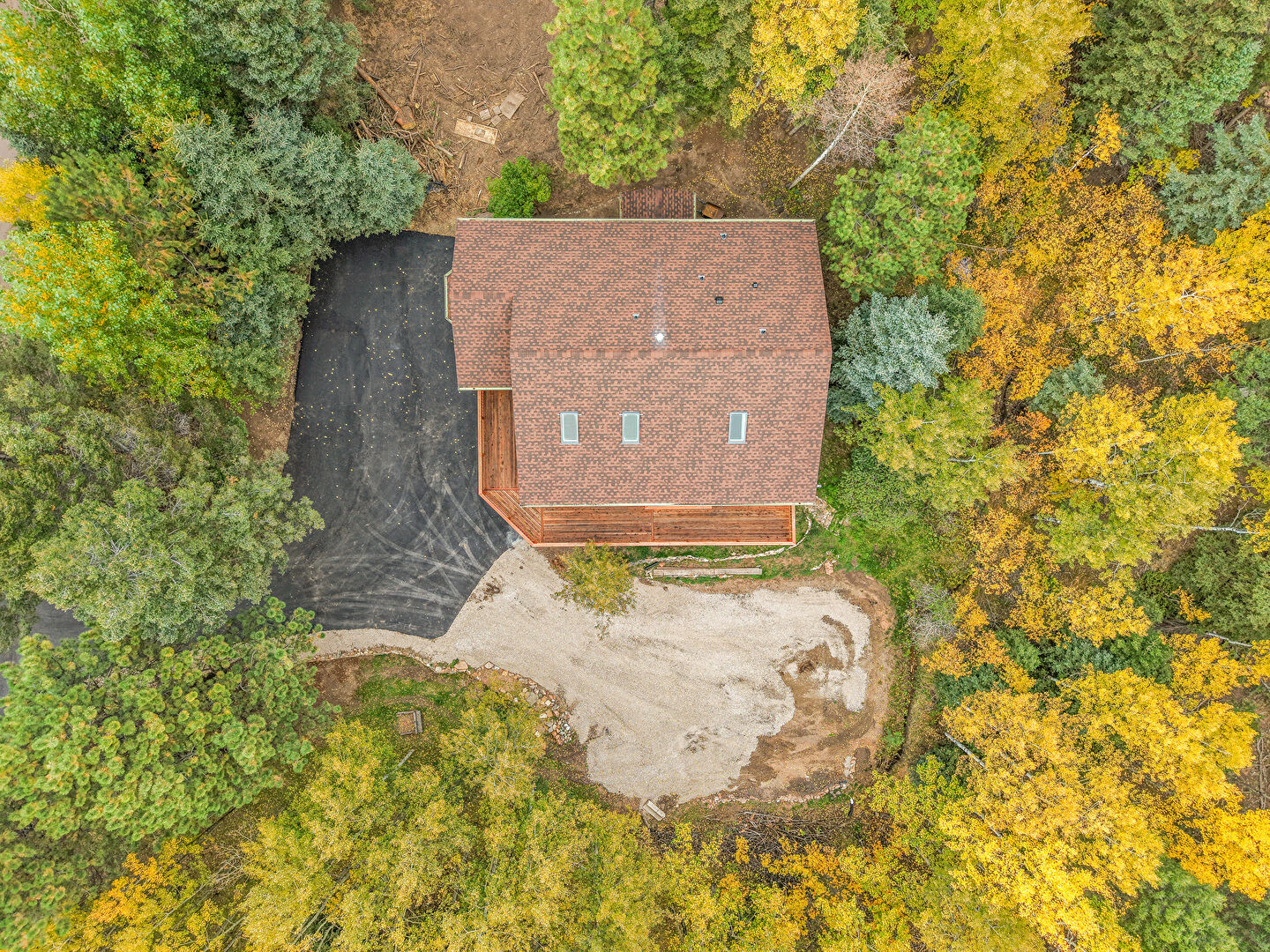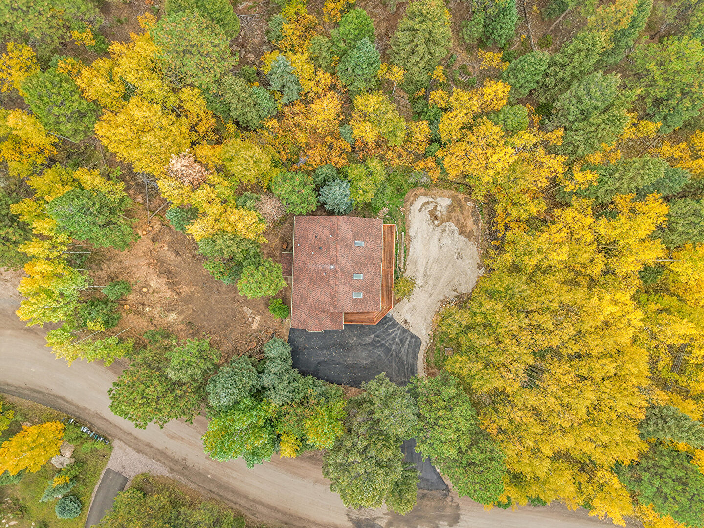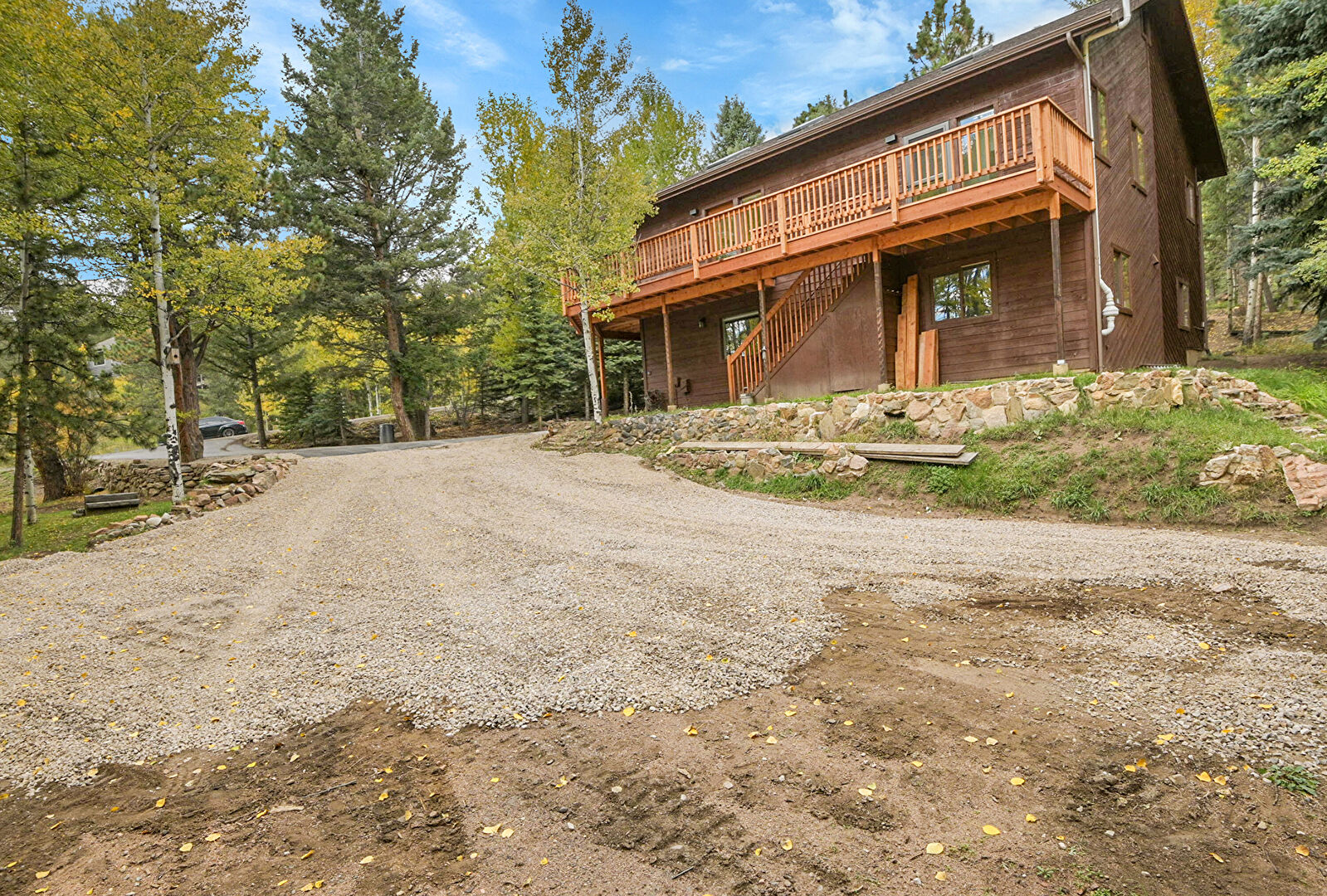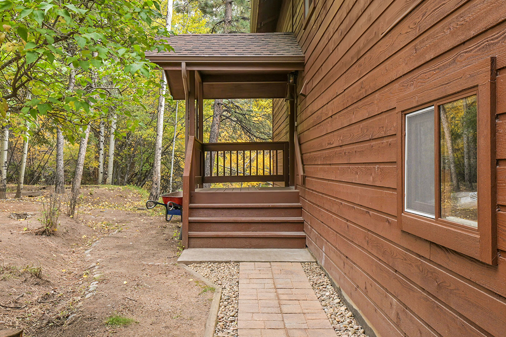 Basement Garage, Basement Walk Out, Built In Garage, Concrete Foundation, Deck, Downspout, Driveway, Forest View, Gutters, Horizontal Siding, Shingle Roof, Stairs, Wood Siding, Basement Garage, Built In Garage, Driveway, Gutters, Parking Pad, Stairs, Wood Siding