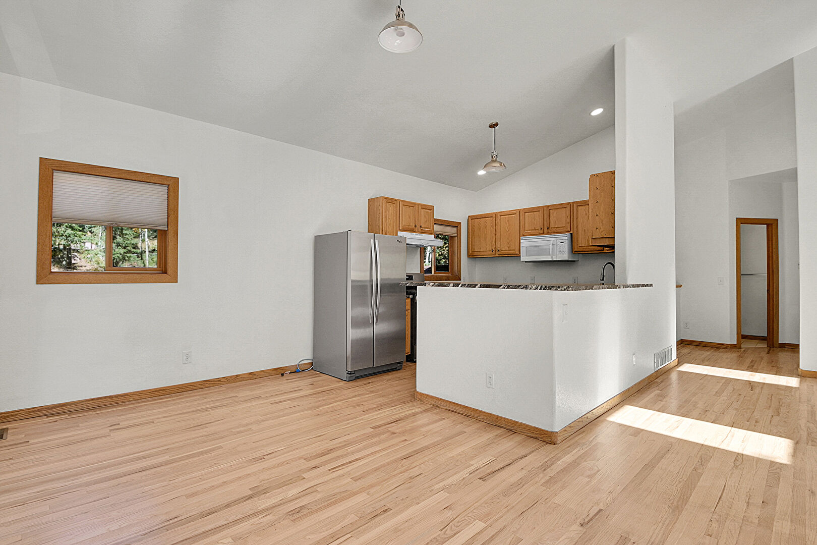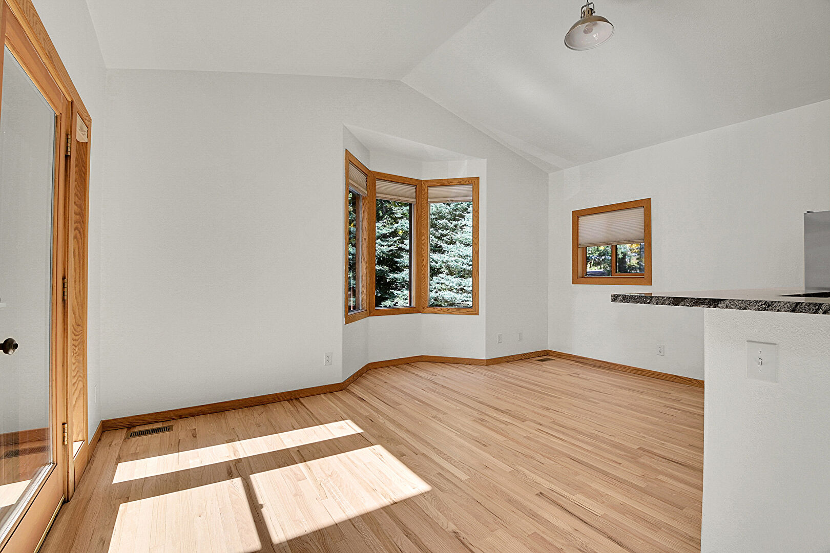Baseboards Wall, Drywall, Vaulted Ceiling, Wood Finish Floor