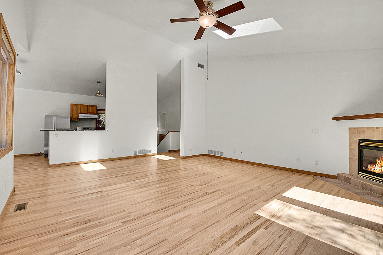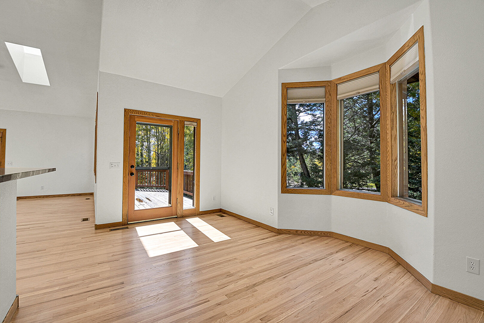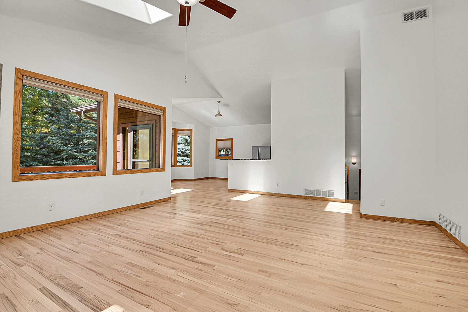 Baseboards Wall, Drywall, Natural Light, Skylight, Vaulted Ceiling, Vent, Wood Finish Floor, Cathedral Ceiling, Natural Light