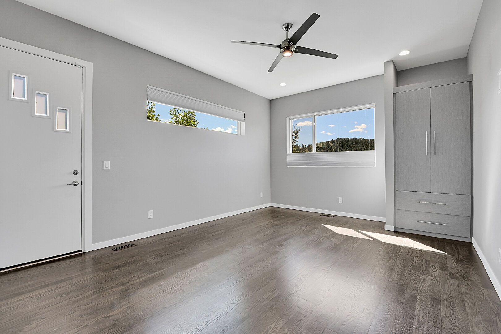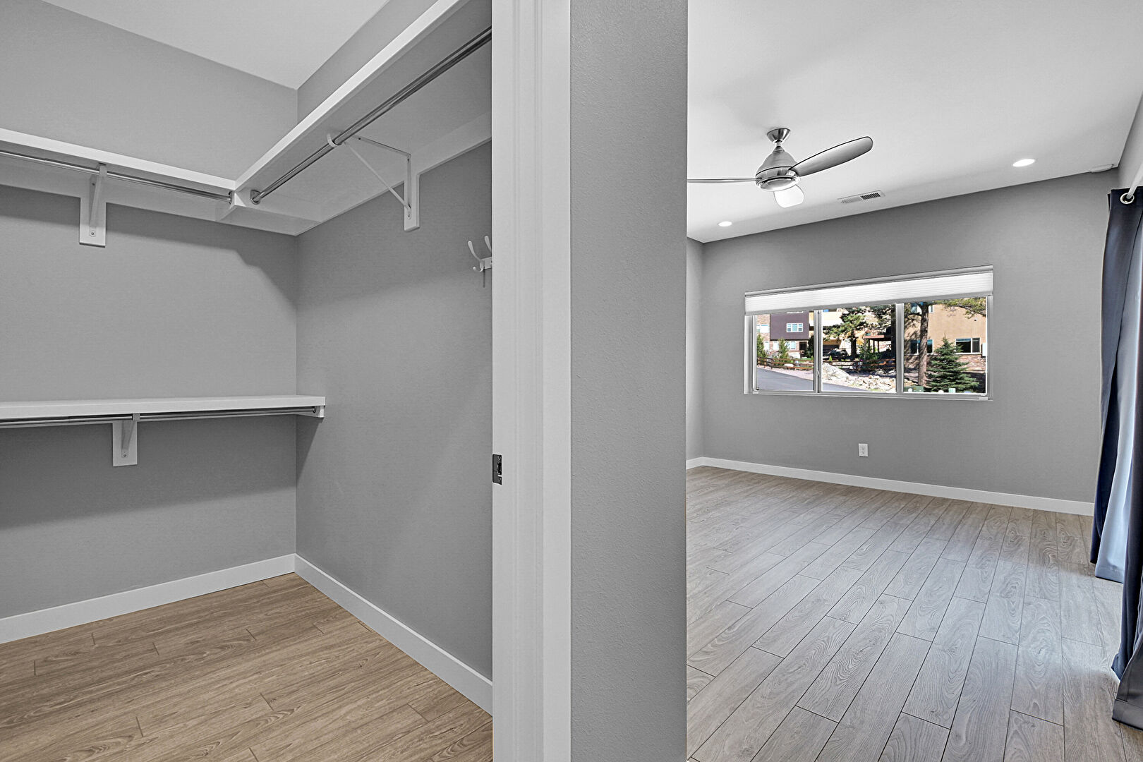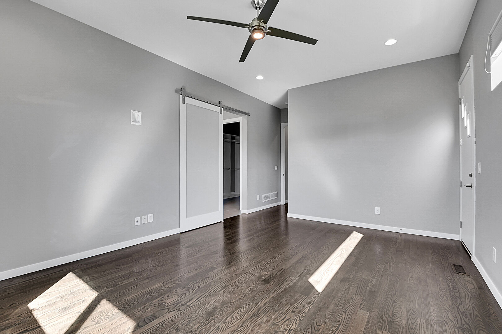 Access To Exterior, Baseboards Wall, Ceiling Fan, Closet, Drywall, Natural Light, Recessed Lighting, Track Lighting, Vent, Walk In Closet, Wood Finish Floor, Barn Door, Baseboards Wall, Drywall, Natural Light, Vent