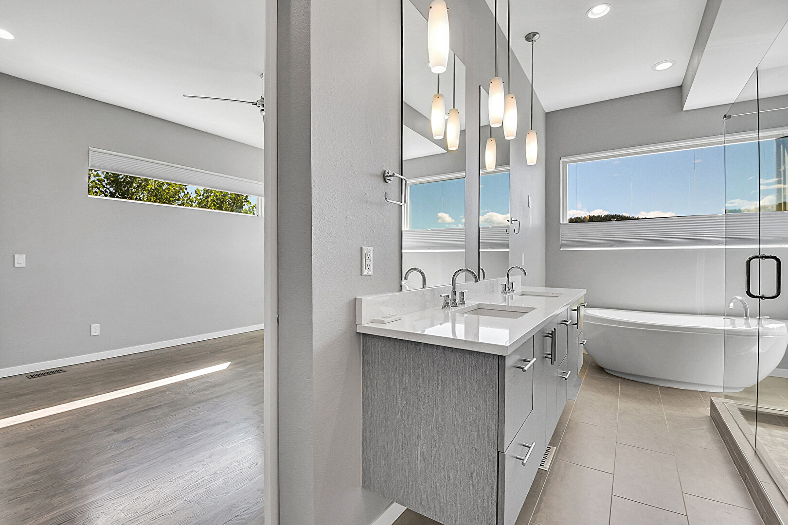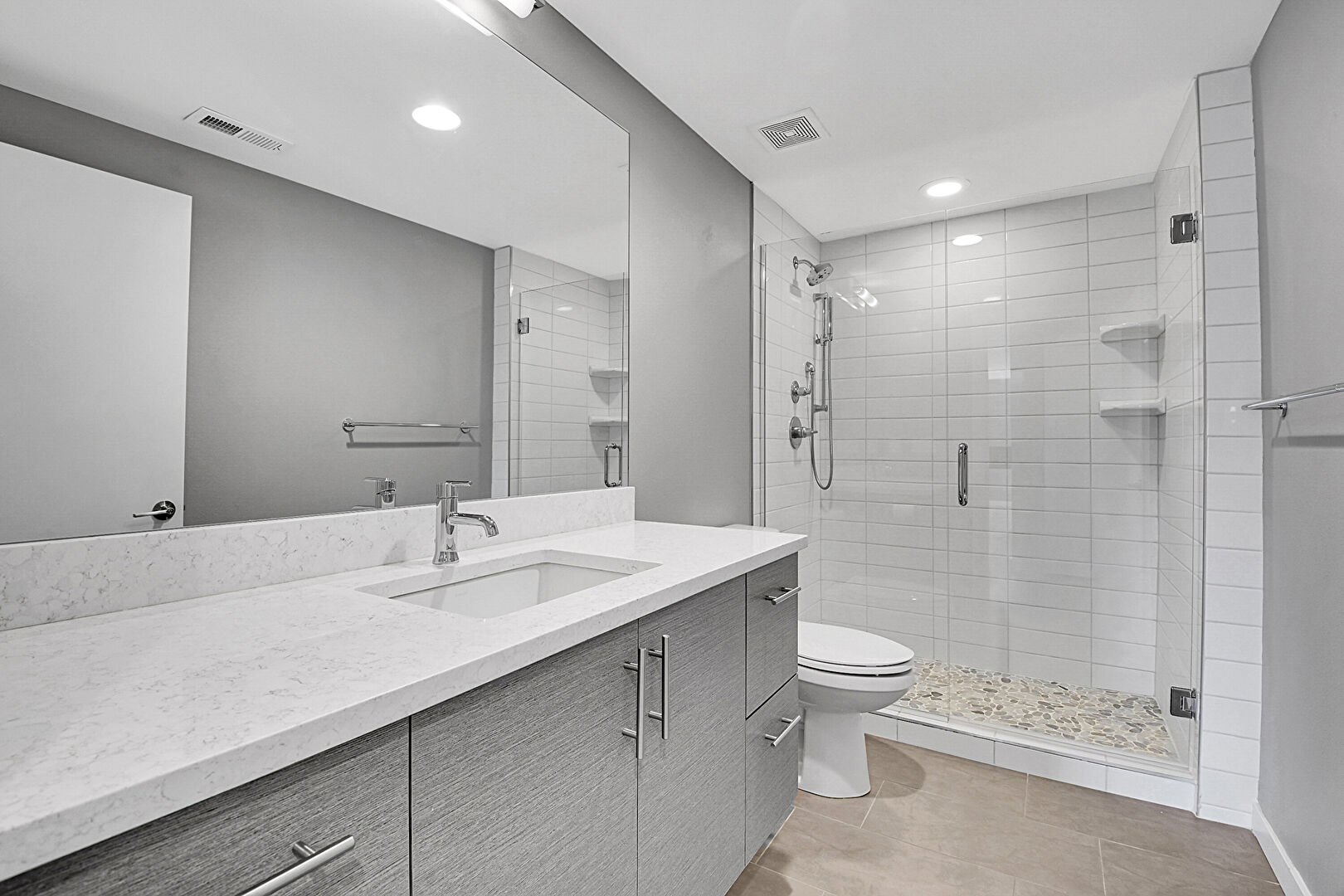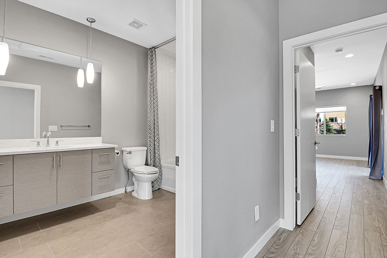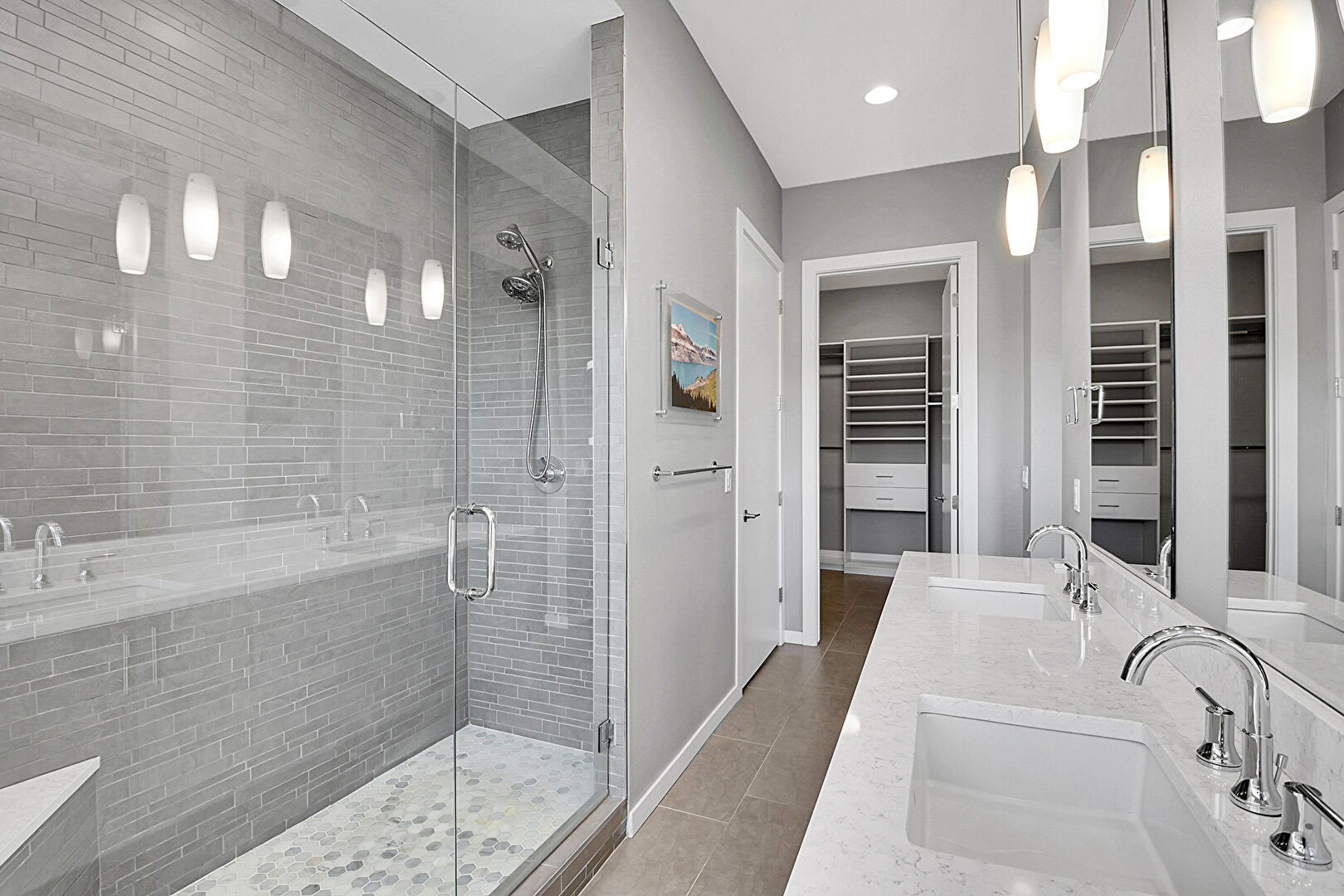 Baseboards Wall, Built In Shelves, Ceiling Fan, Combined Bath Shower, Double Vanity, Drywall, Full Bathroom, Natural Light, Recessed Lighting, Tile Floor, Vanity, Vent, Walk In Closet, Wood Finish Floor, Drywall, Full Bathroom, Half Bathroom, Natural Light