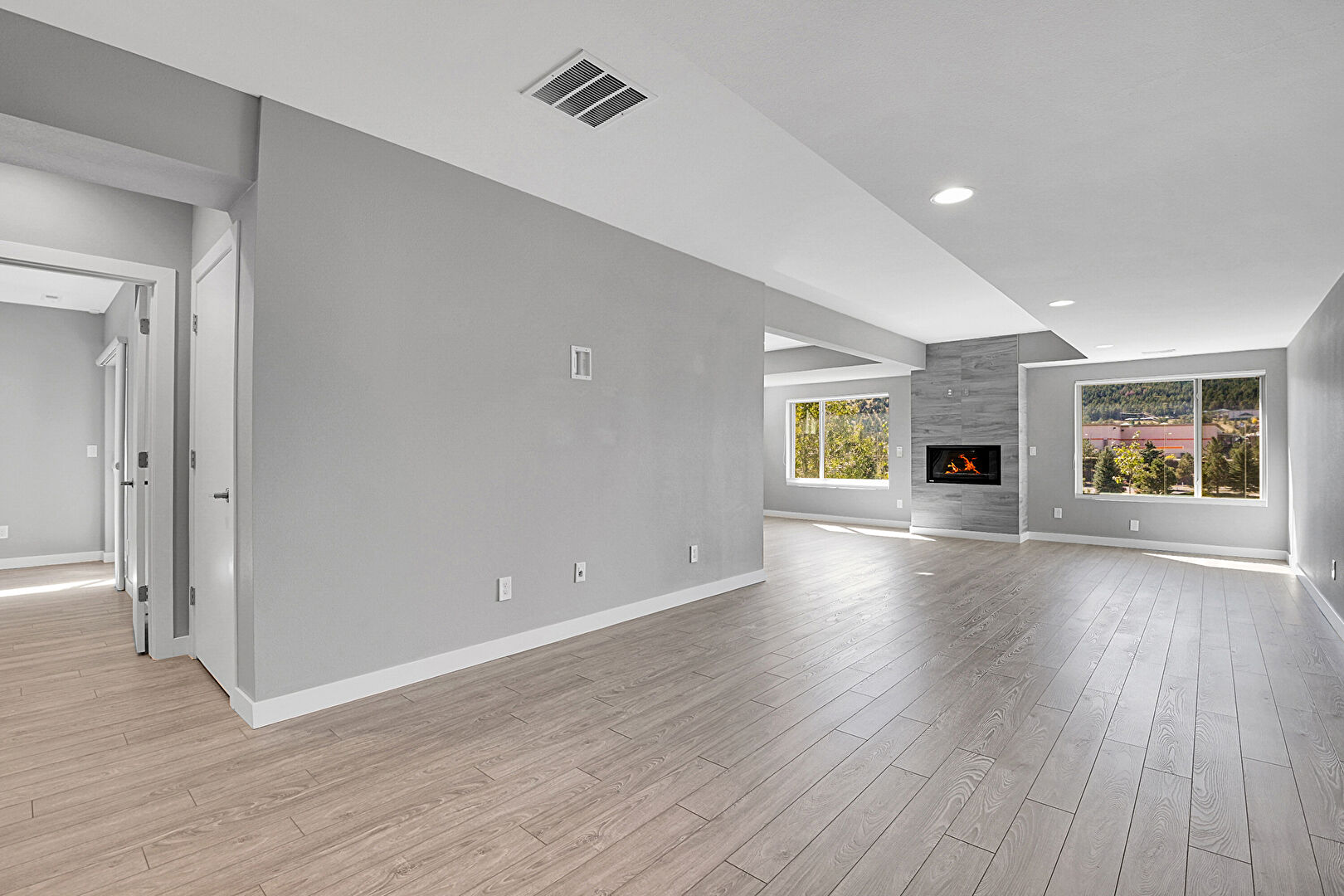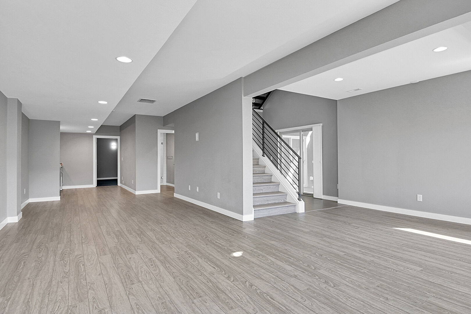 Baseboards Wall, Natural Light, Notable Chandelier, Recessed Lighting, Vent, Wood Finish Floor, Drywall
