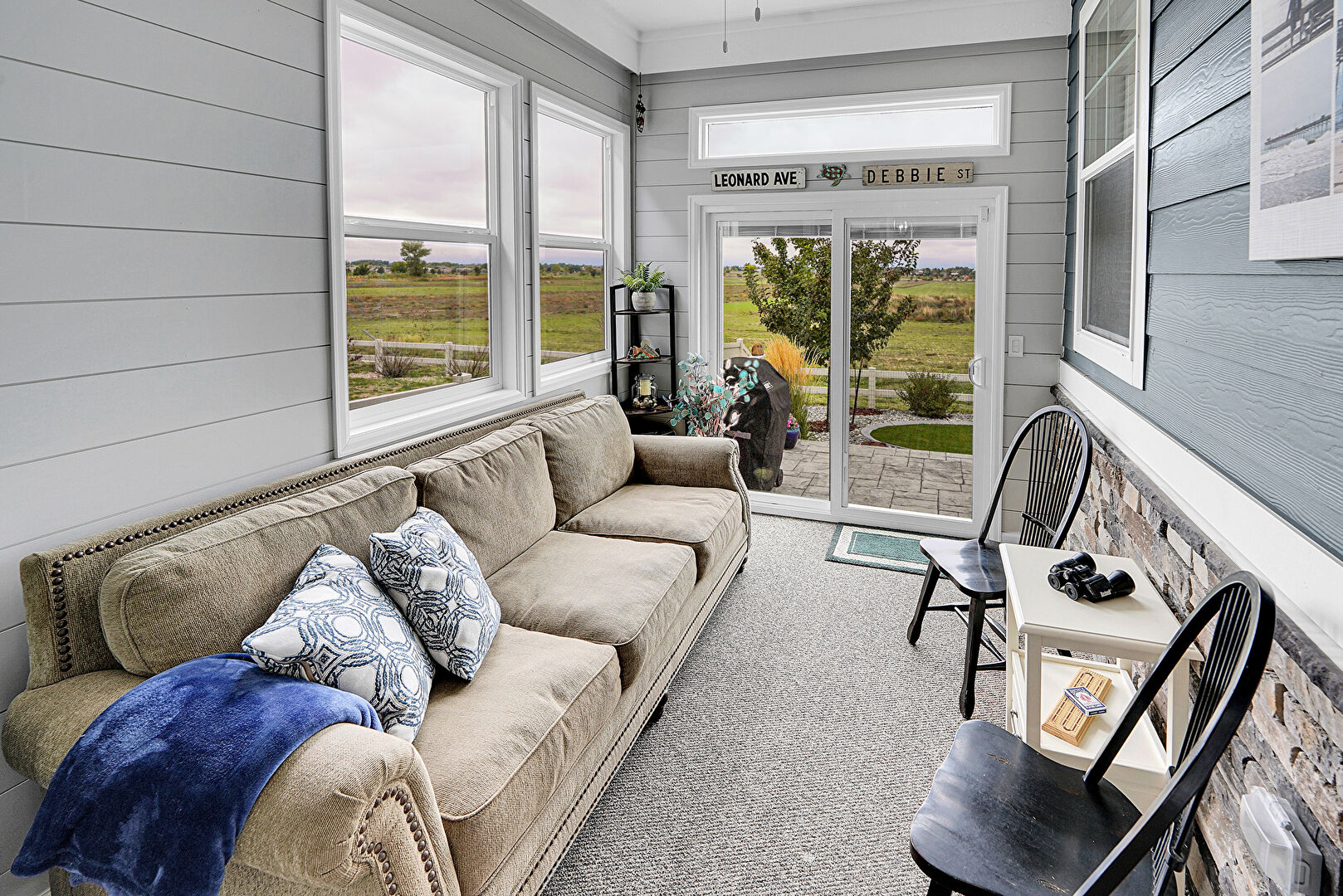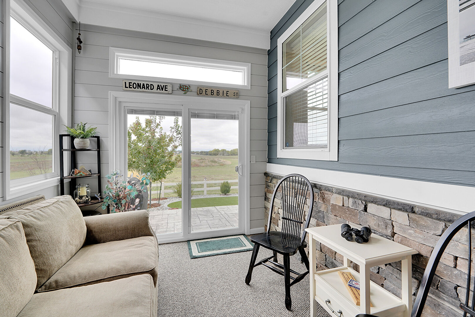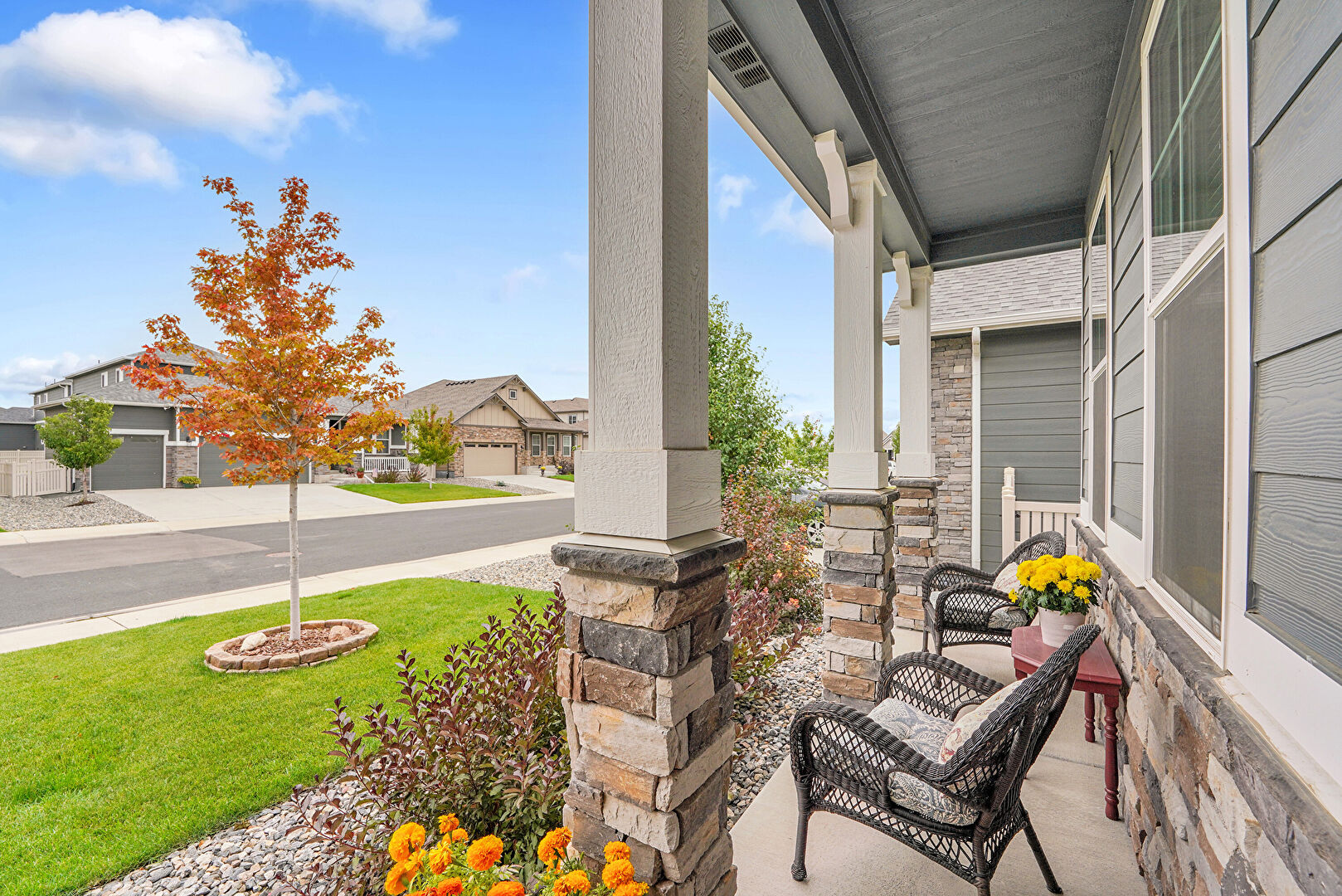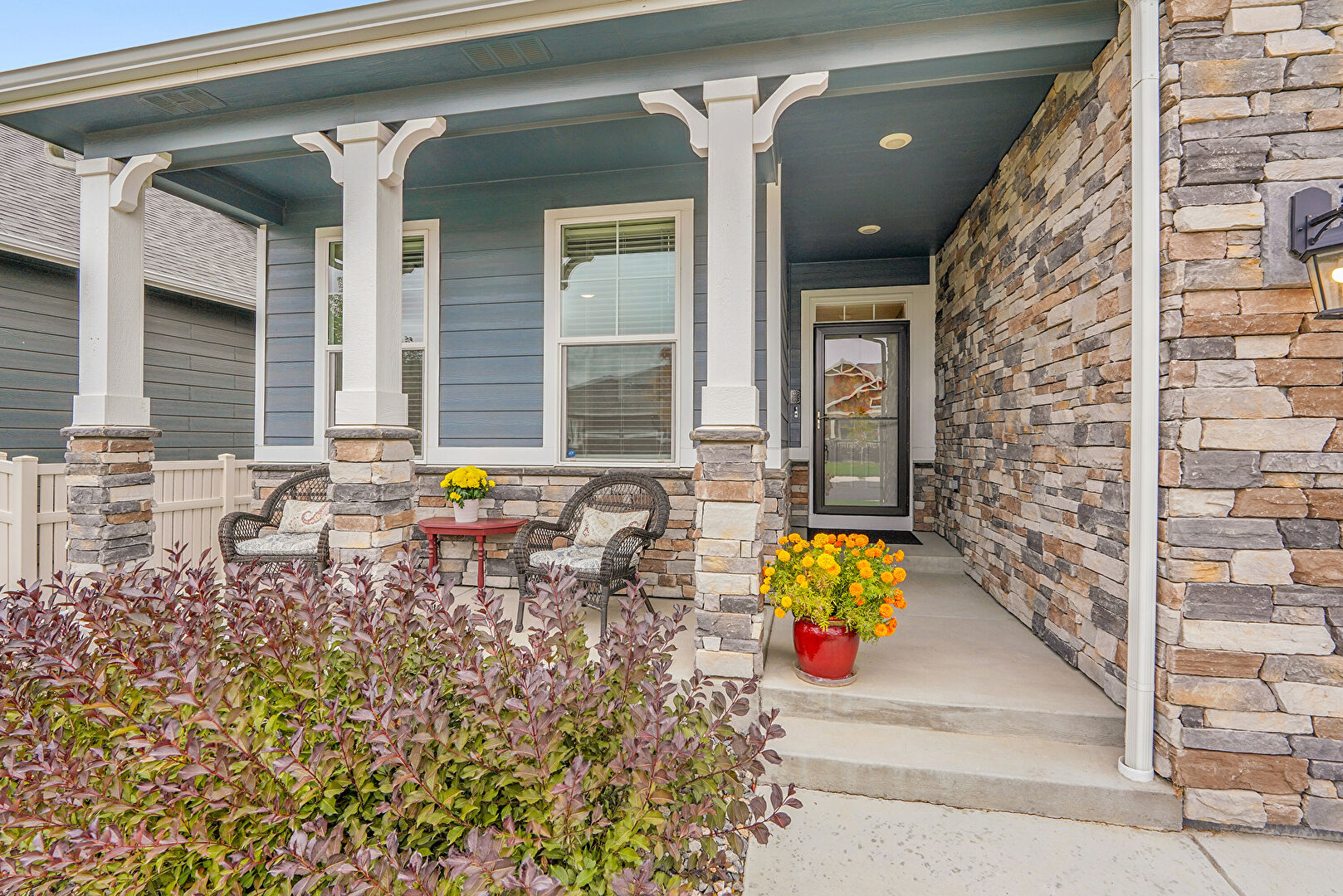Gutters, Horizontal Siding, Lawn, Porch, Residential View, Stone Siding, Downspout, Porch