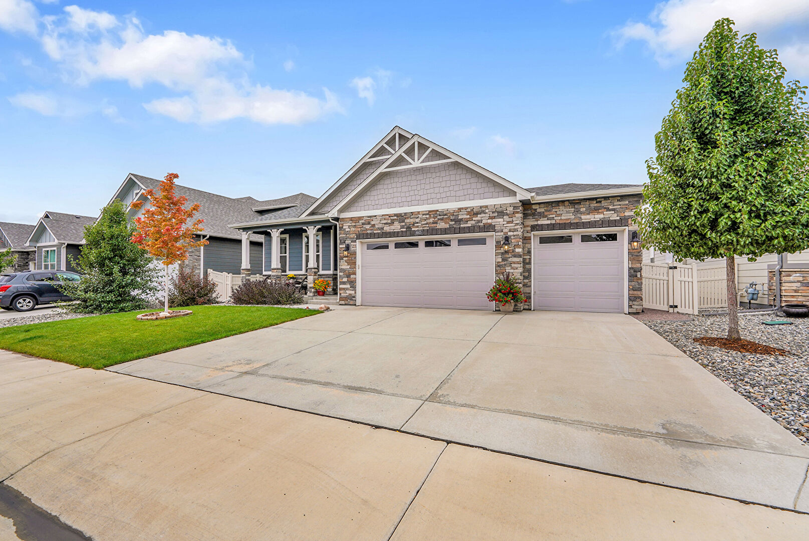 Downspout, Driveway, Fence, Gutters, Horizontal Siding, Lawn, Porch, Shake Shingle Siding, Stone Siding, Driveway, Lawn, Stone Siding