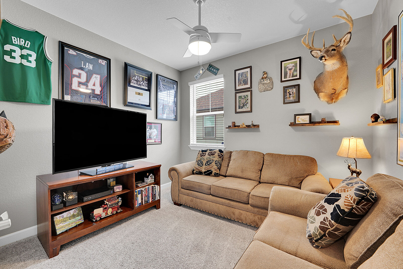 Baseboards Wall, Carpet, Drywall, Natural Light, Vent, Ceiling Fan