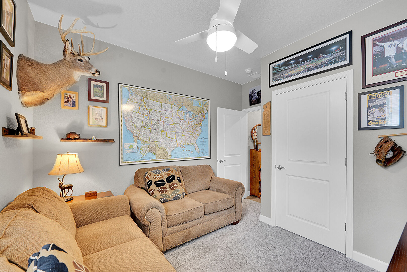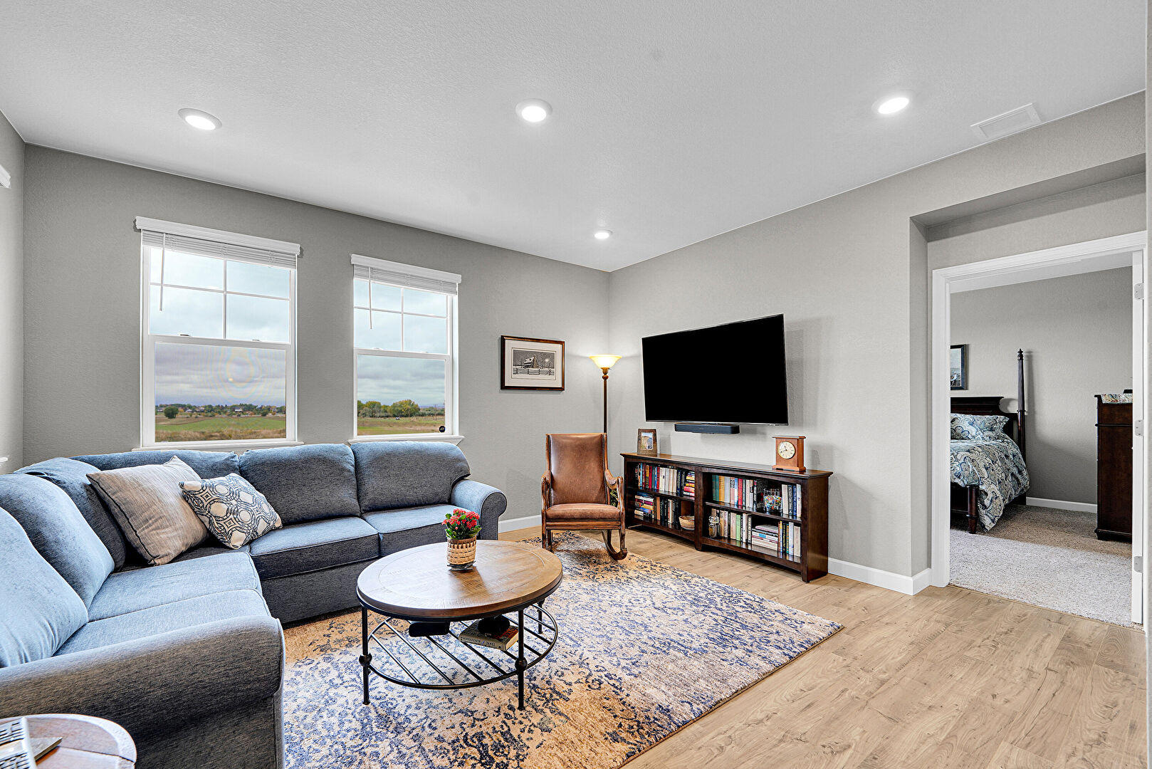 Baseboards Wall, Carpet, Ceiling Fan, Drywall, Natural Light, Recessed Lighting, Vent, Wood Finish Floor, Baseboards Wall, Carpet, Drywall