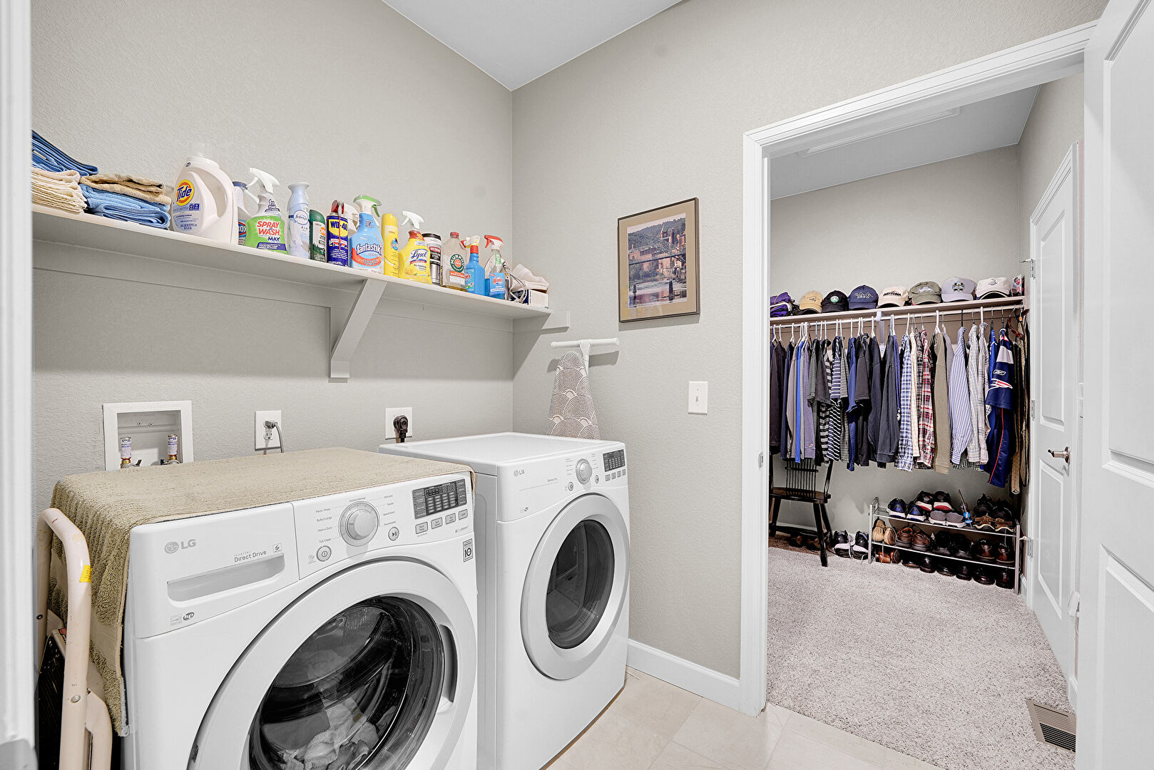 Baseboards Wall, Carpet, Drywall, Electric Dryer Hookup, Tile Floor, Vent, Washer Hookup, Laundry