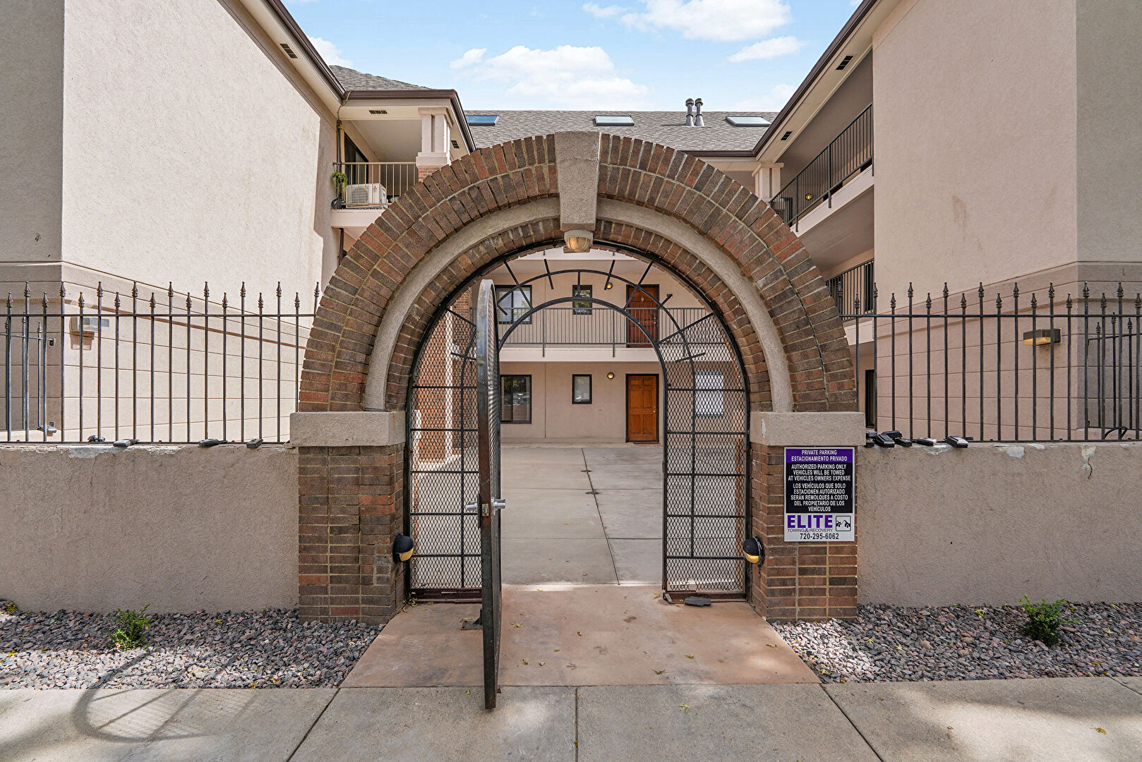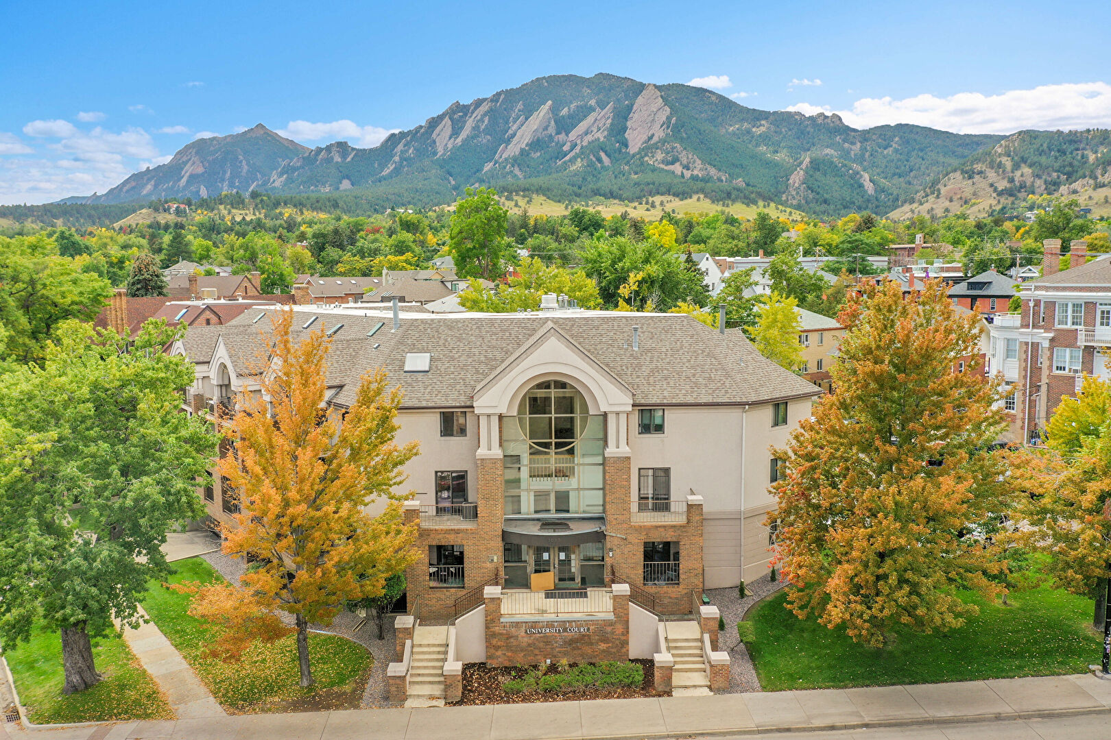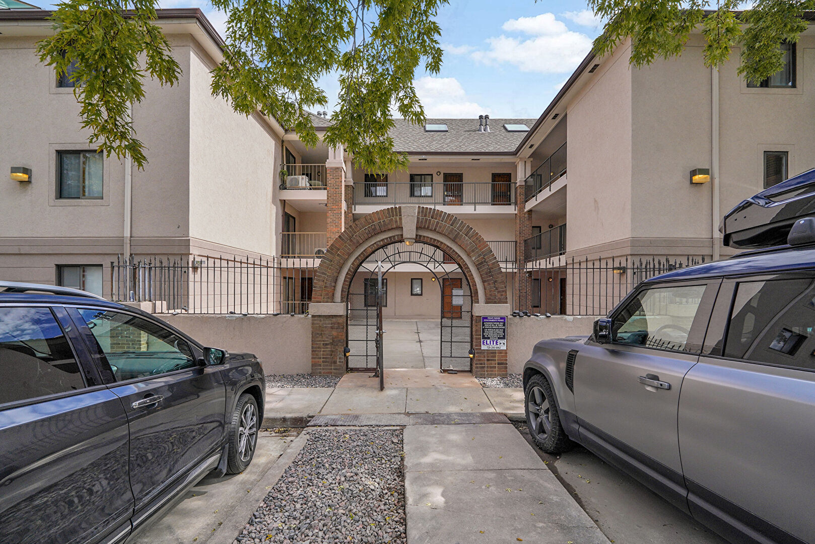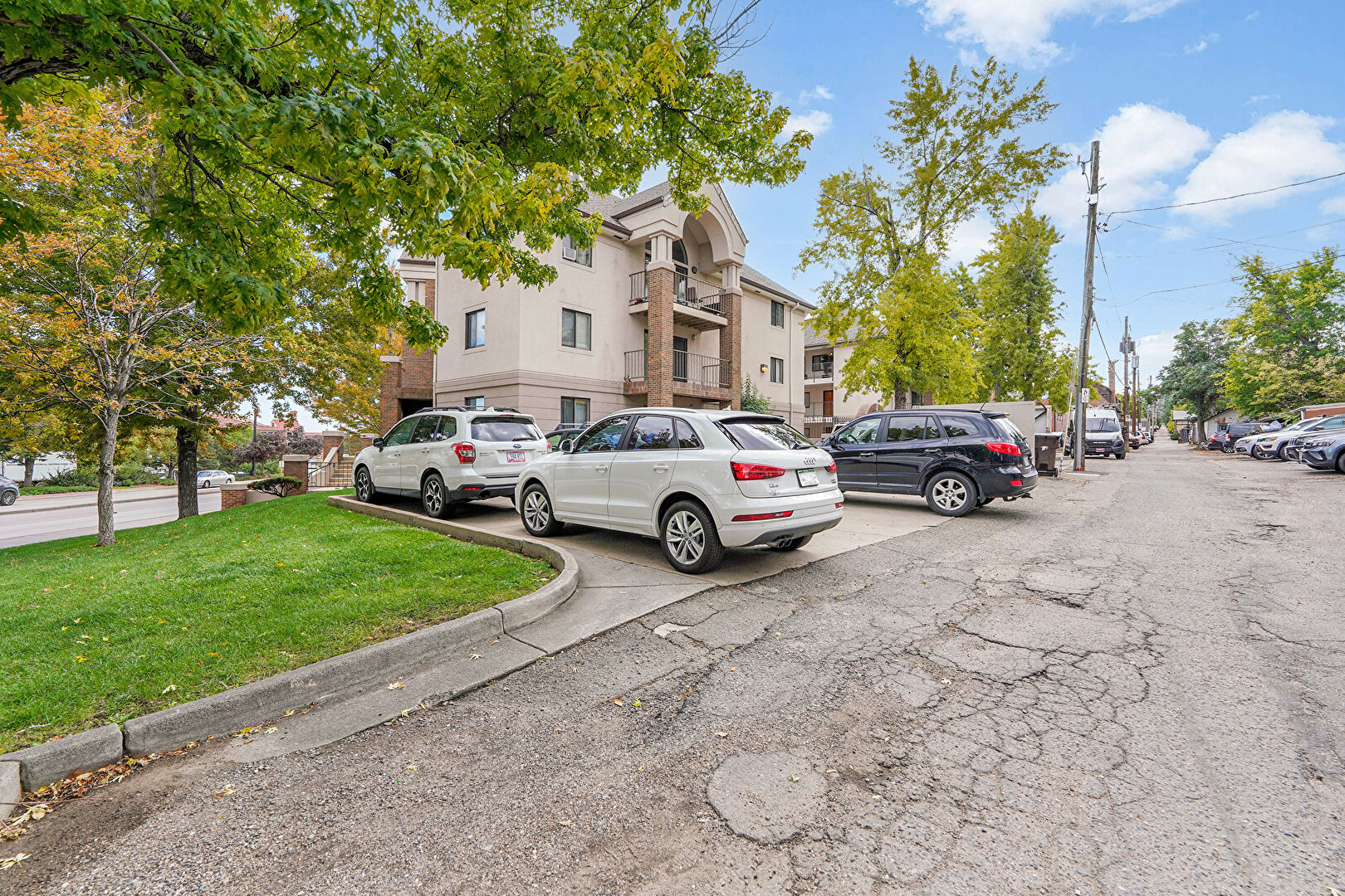 Balcony, Brick Siding, Chimney, Curbs, Dormer Roof, Downspout, Fence, Lawn, Porch, Residential View, Sidewalks, Street, Street Lights, Traffic Signs, Apartment Complex View, Brick Siding, Lawn, Mountain View