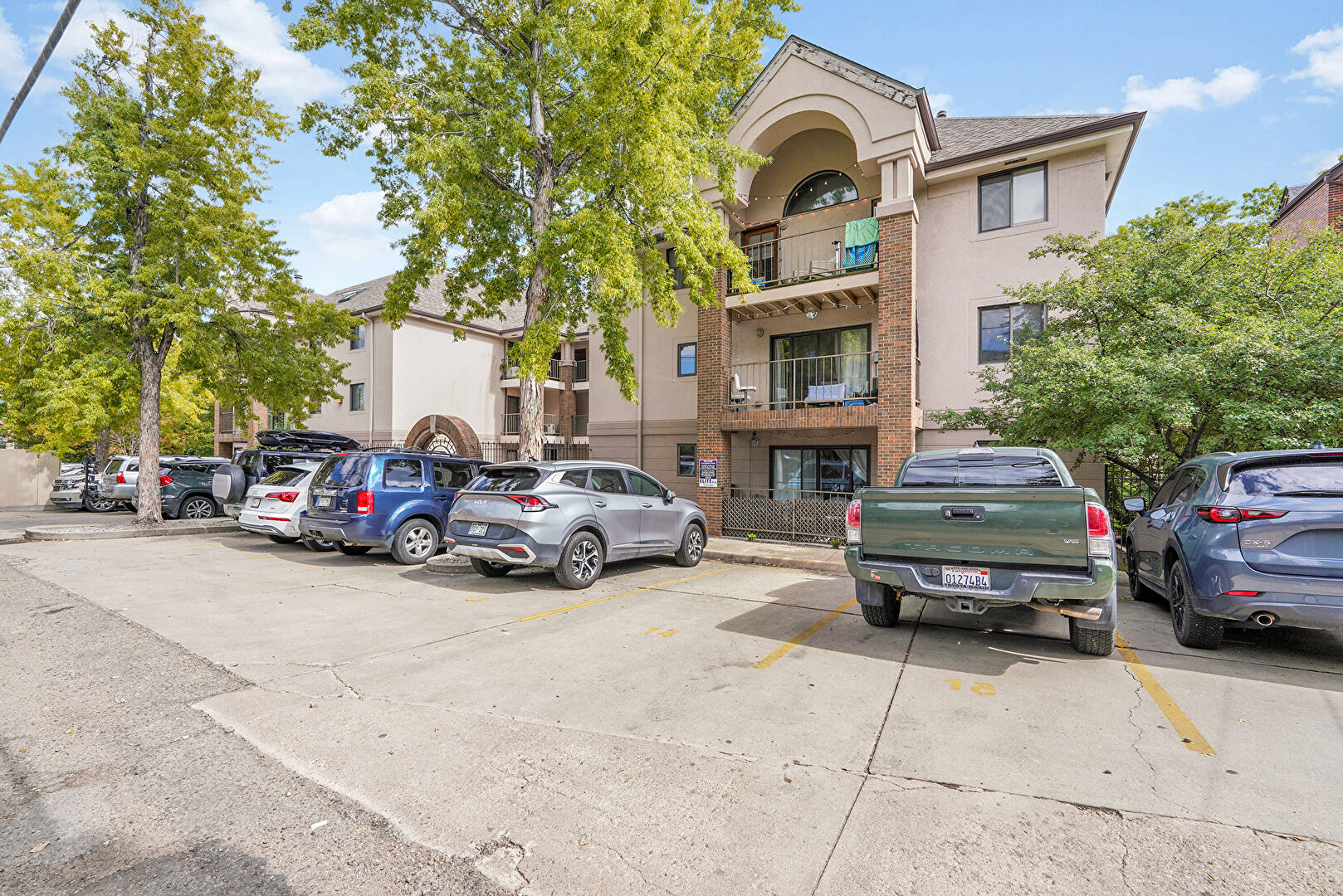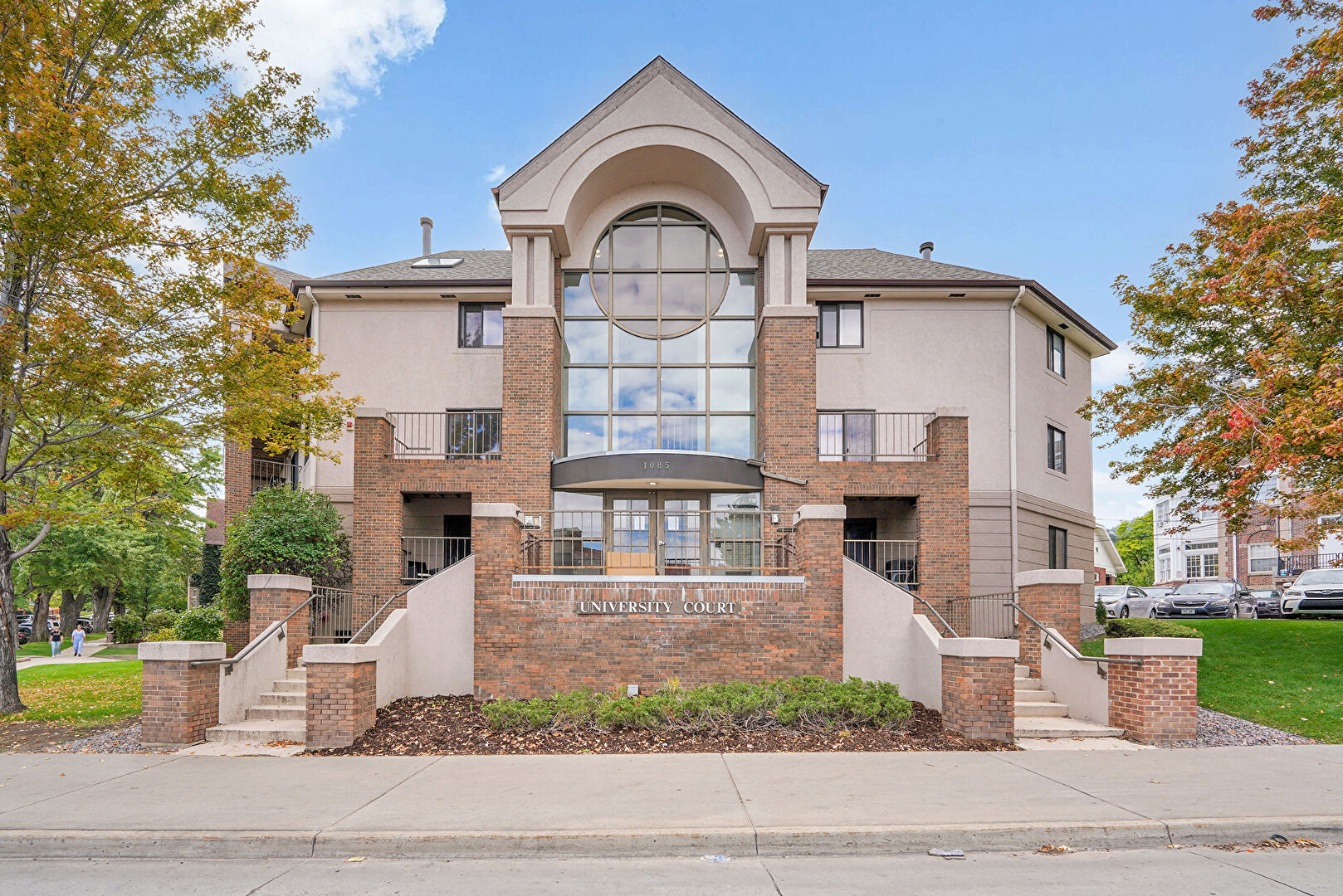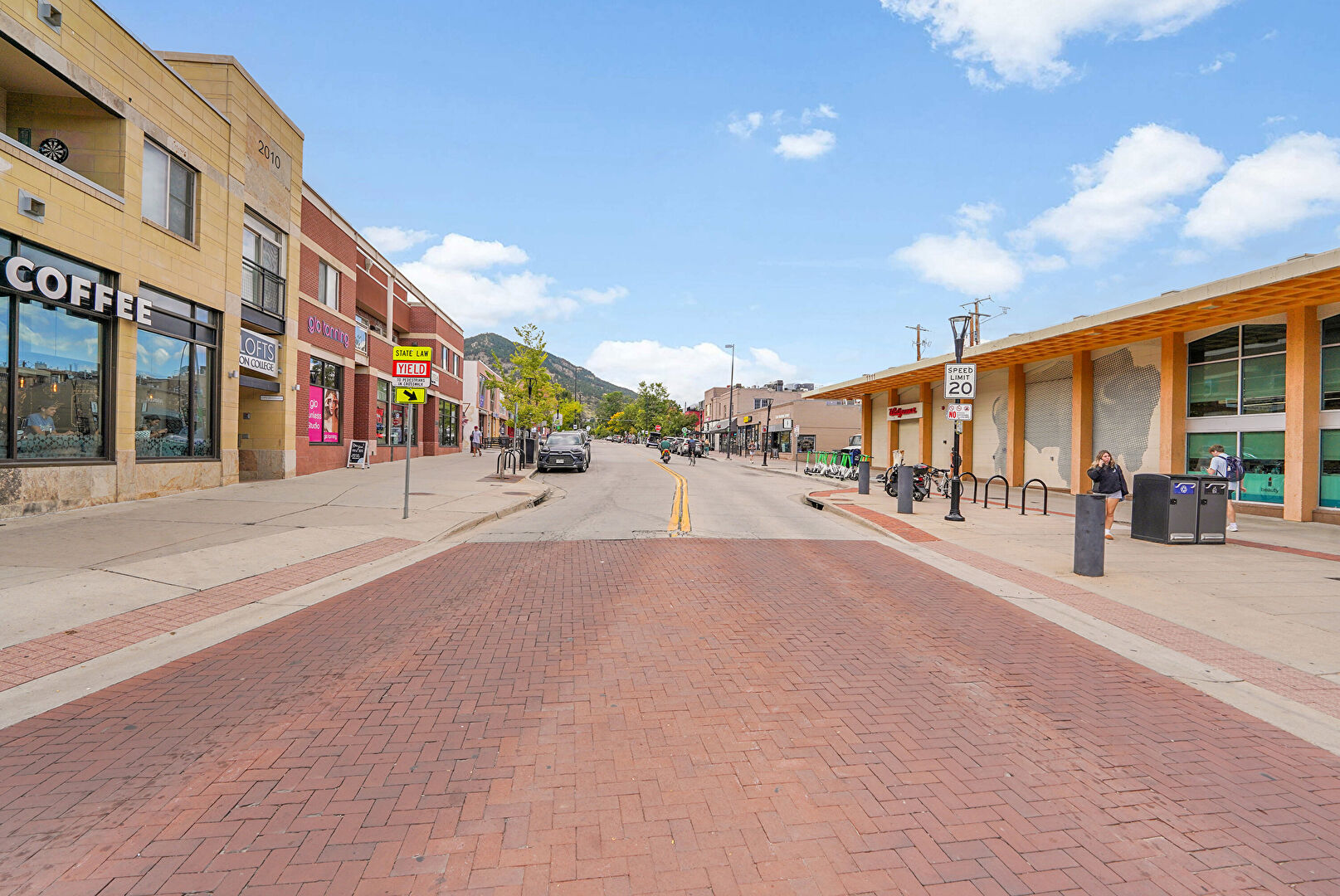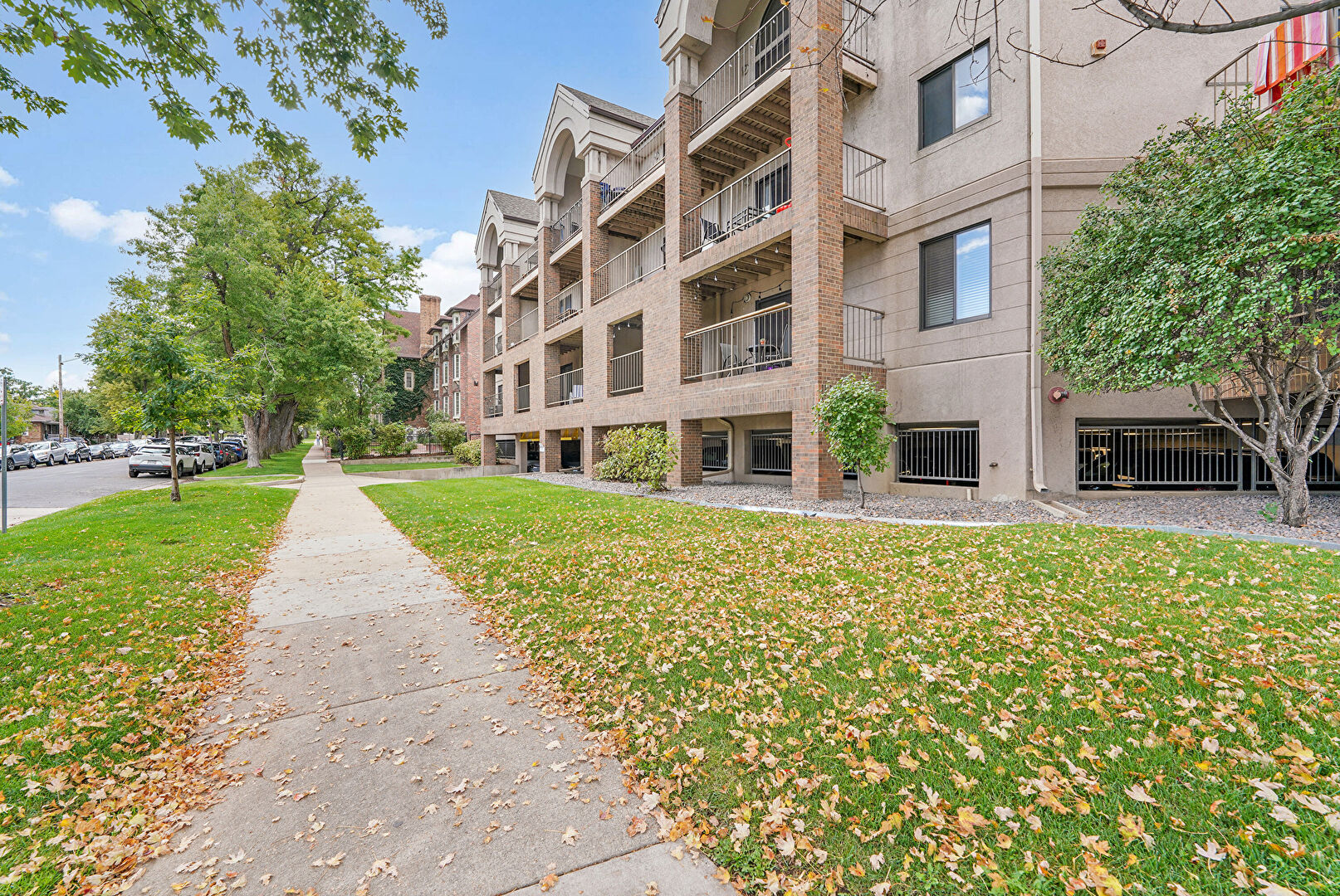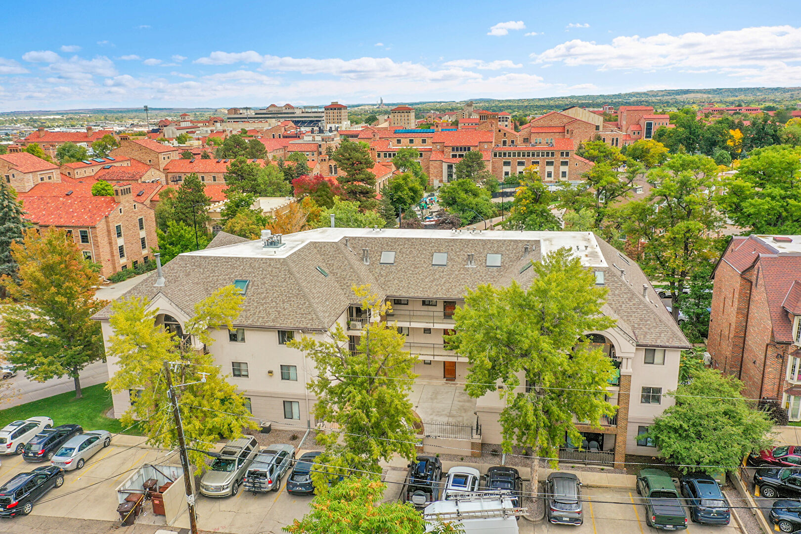 Balcony, Brick Siding, Chimney, Curbs, Dormer Roof, Downspout, Fence, Lawn, Porch, Residential View, Sidewalks, Street, Street Lights, Traffic Signs, Apartment Complex View, Brick Siding, Lawn, Mountain View