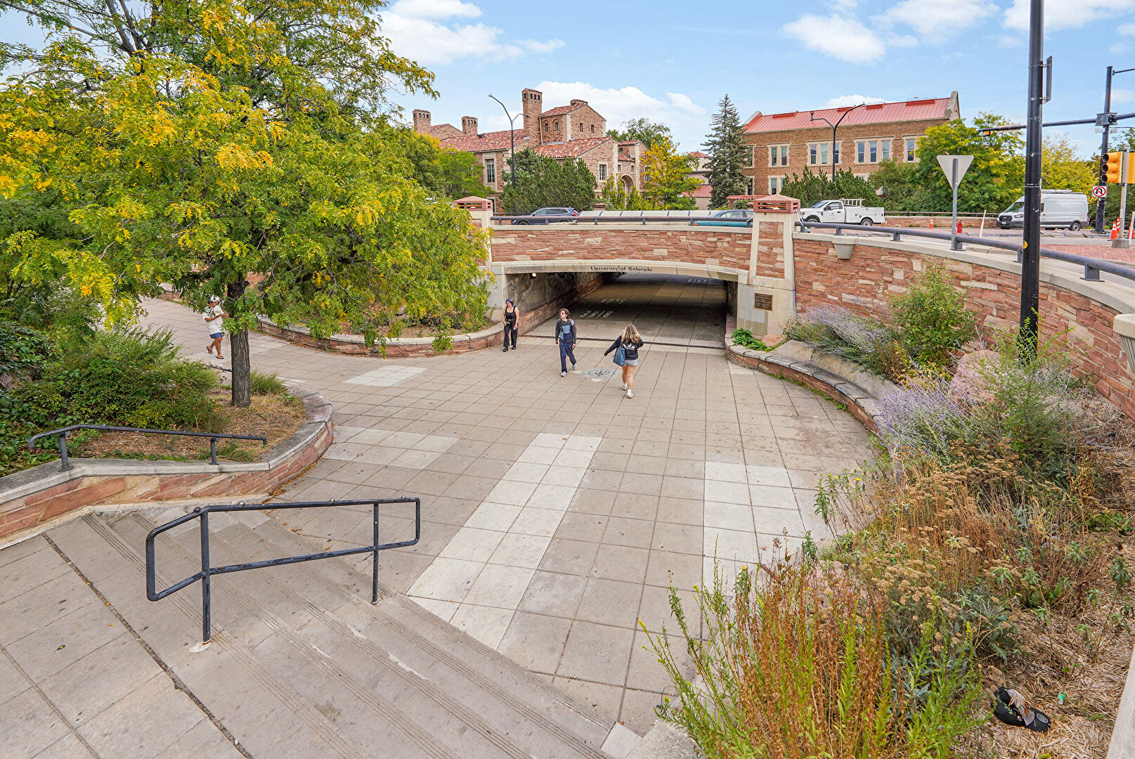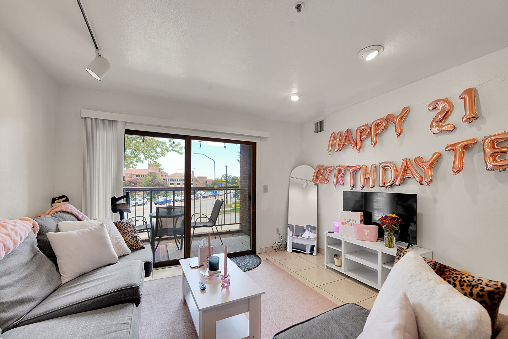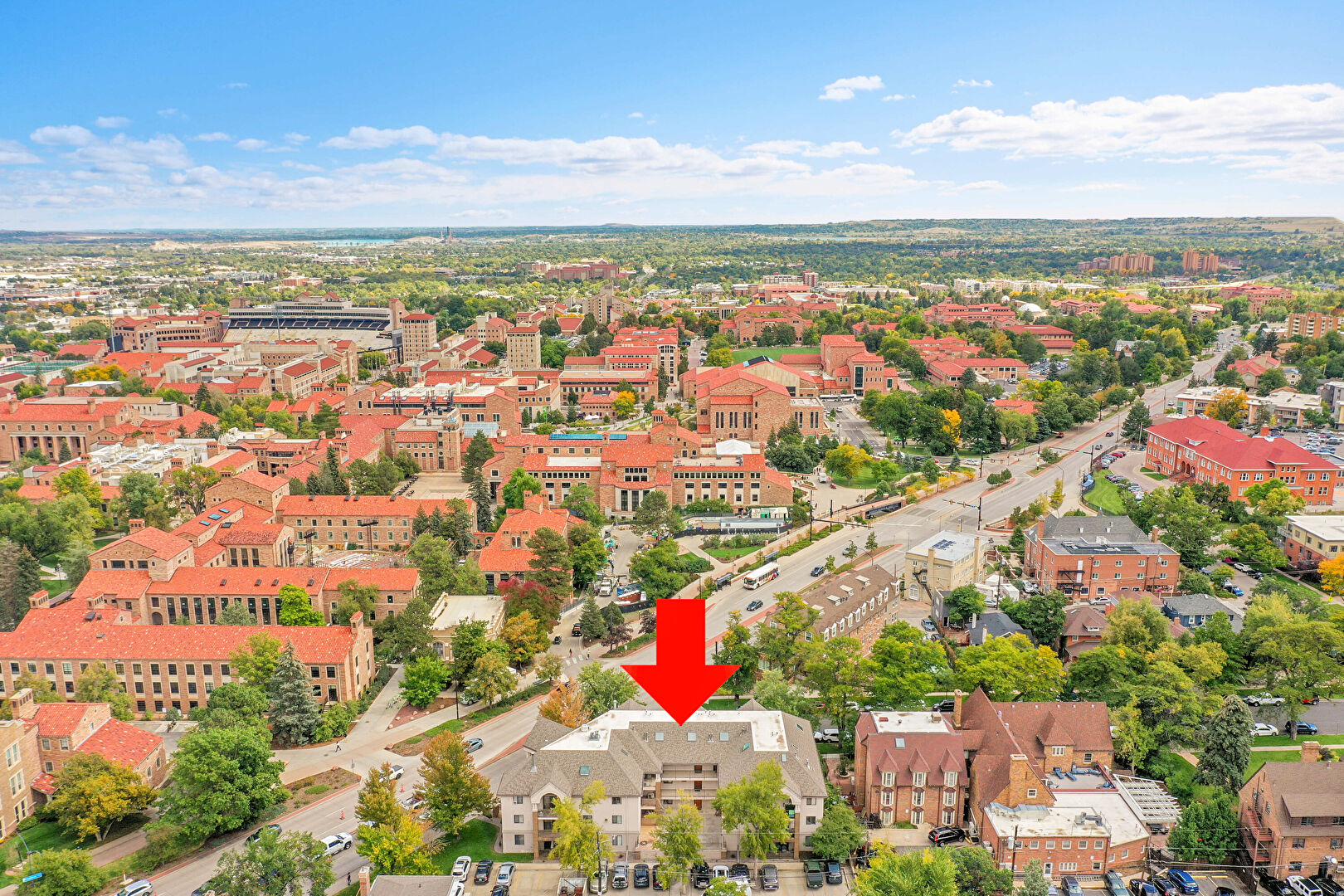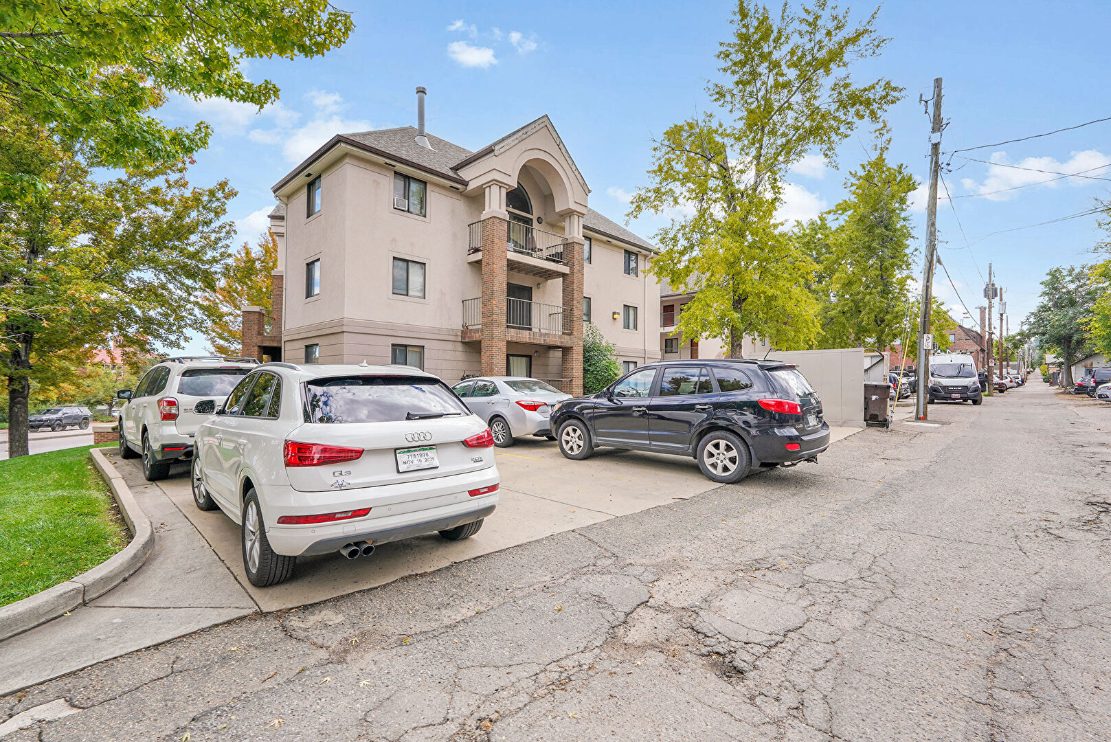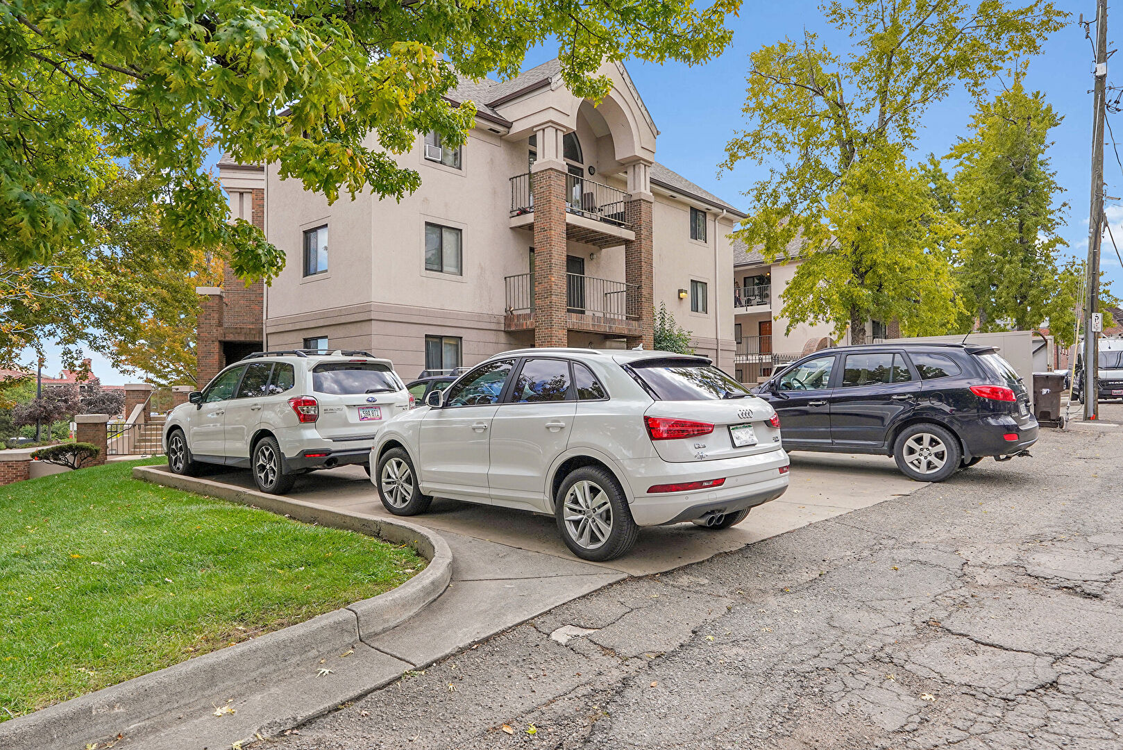Balcony, Brick Siding, Chimney, Curbs, Dormer Roof, Downspout, Fence, Lawn, Porch, Residential View, Sidewalks, Street, Street Lights, Traffic Signs, Apartment Complex View, Brick Siding, Lawn, Mountain View