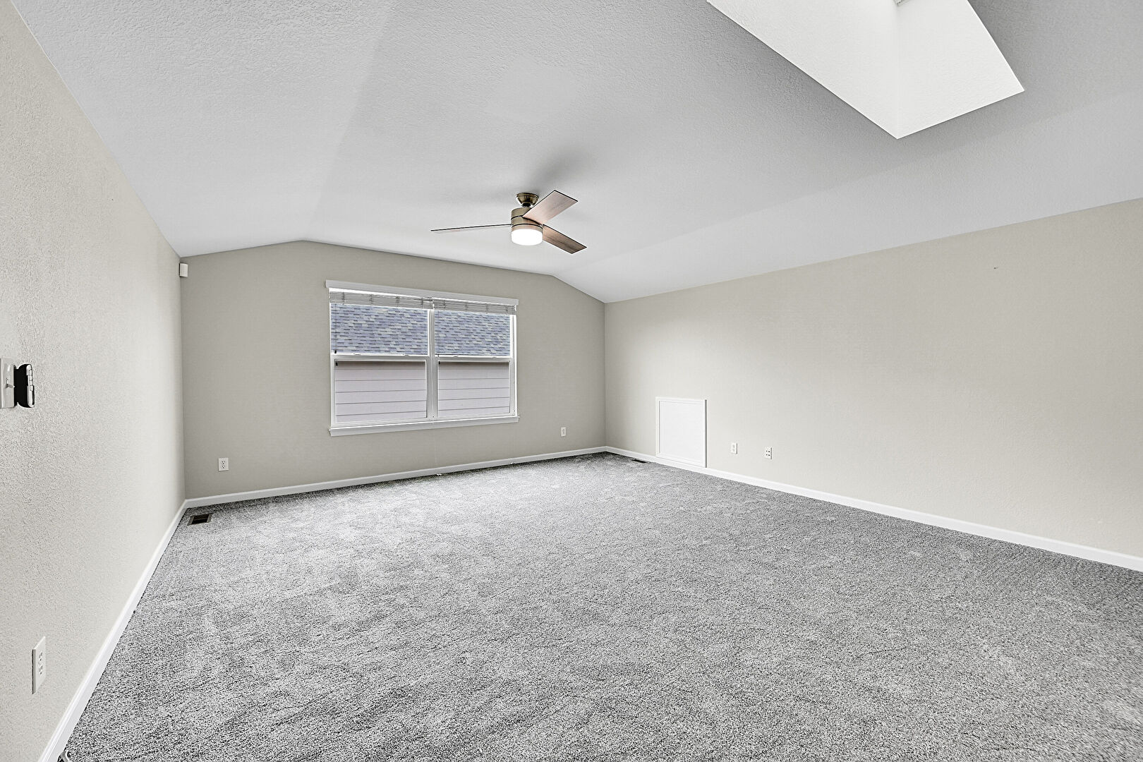 Baseboards Wall, Basement, Bonus Room, Carpet, Cathedral Ceiling, Ceiling Fan, Crown Molding, Drywall, Natural Light, Notable Chandelier, Recessed Lighting, Skylight, Textured Ceiling, Textured Wall, Tray Ceiling, Vent, Baseboards Wall, Carpet, Ceiling Fan, Natural Light, Recessed Lighting, Skylight, Vaulted Ceiling