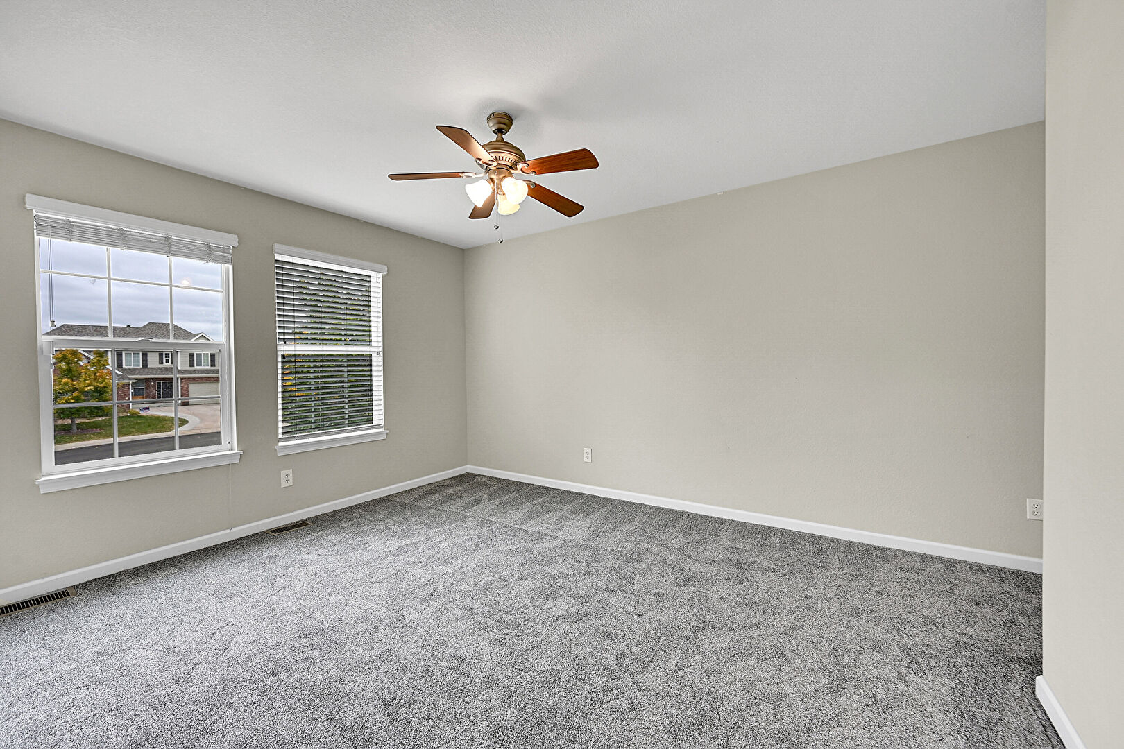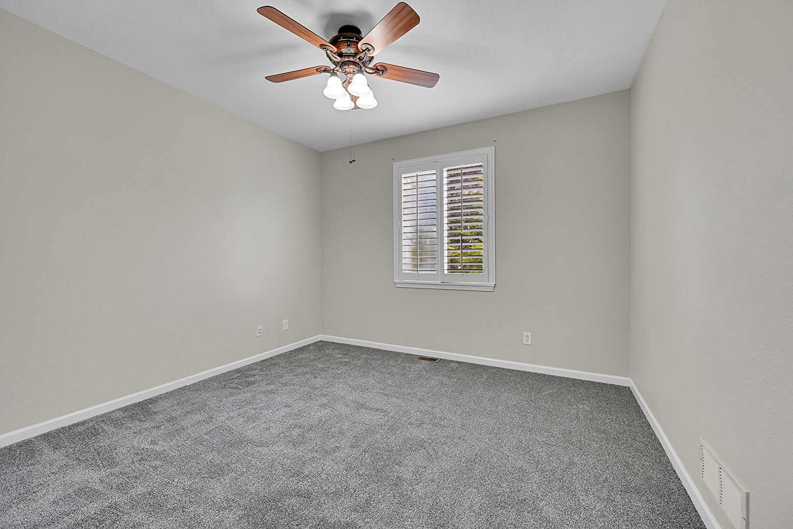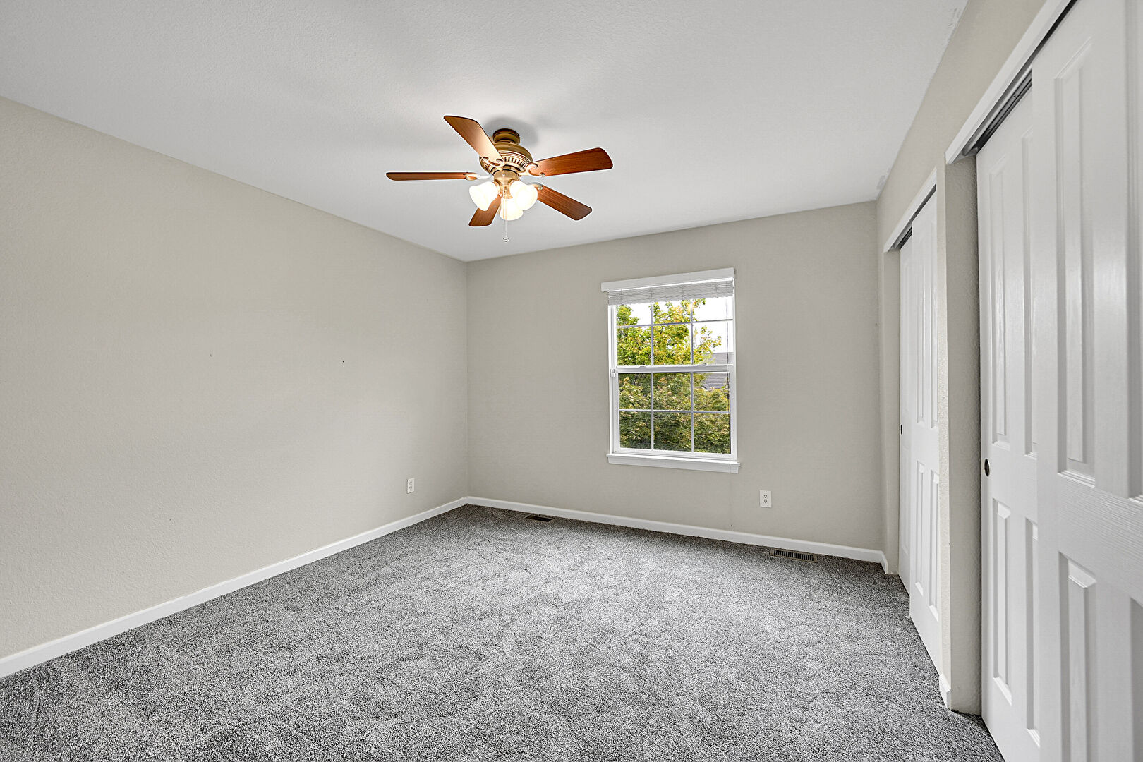 Baseboards Wall, Ceiling Fan, Drywall, Natural Light, Two Closets, Vent, Carpet