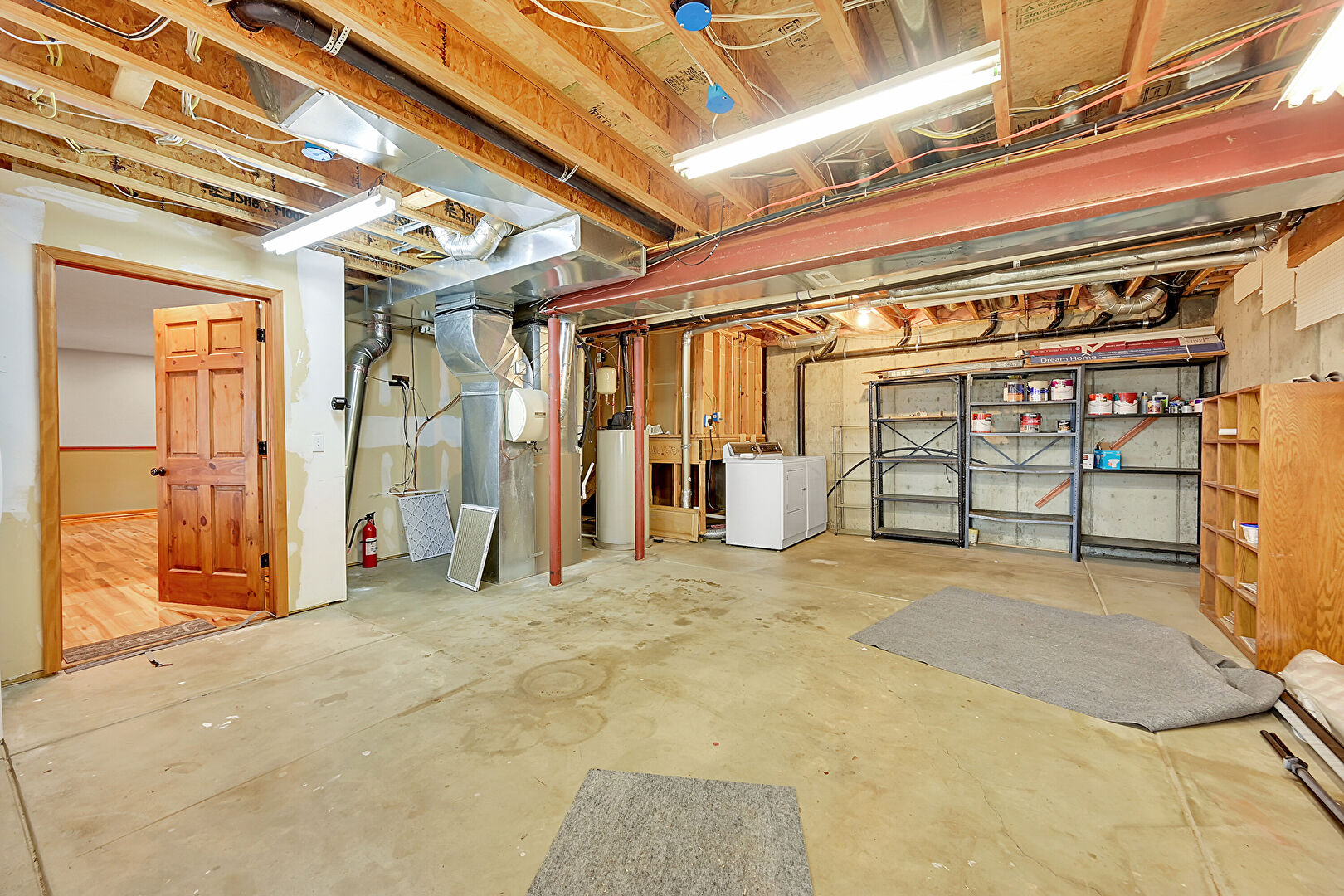 Baseboards Wall, Basement, Carpet, Concrete Foundation, Crown Molding, Drywall, Fire Extinguisher, Furnace, Laundry, Vent, Washer Dryer, Water Heater, Wood Finish Floor, Natural Light, Water Expansion Tank