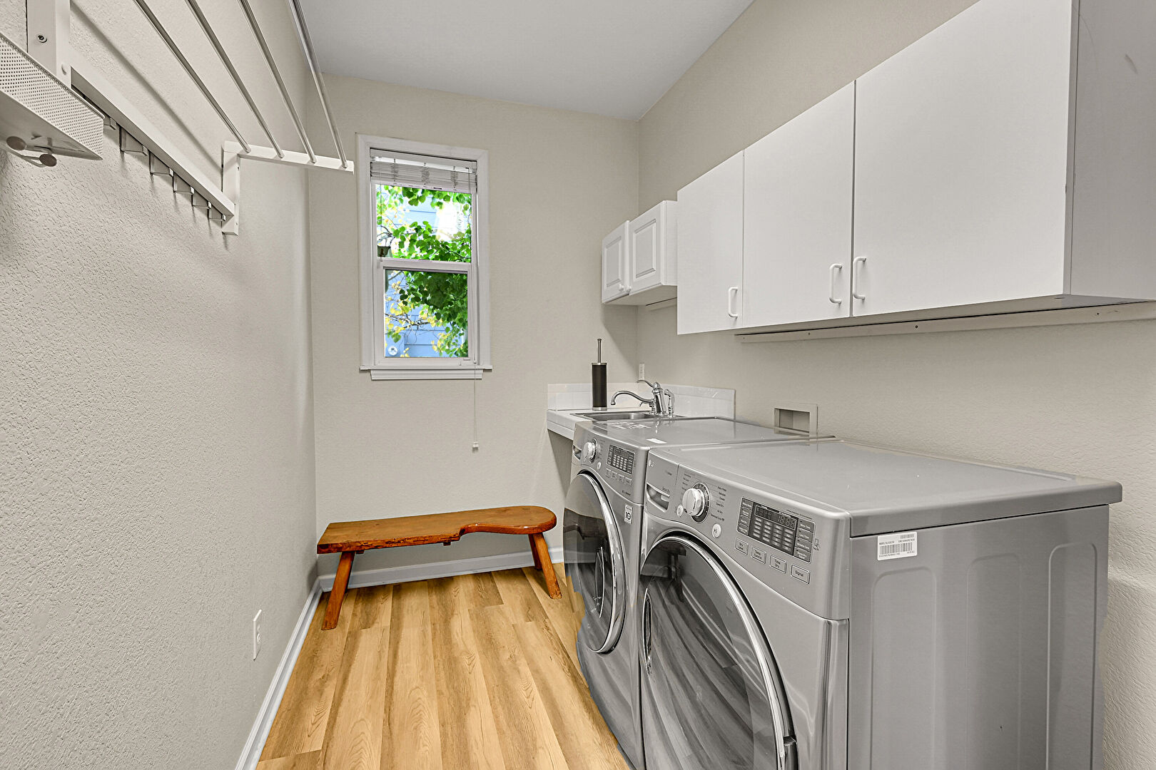 Baseboards Wall, Laundry, Natural Light, Textured Wall, Washer Hookup, Wood Finish Floor