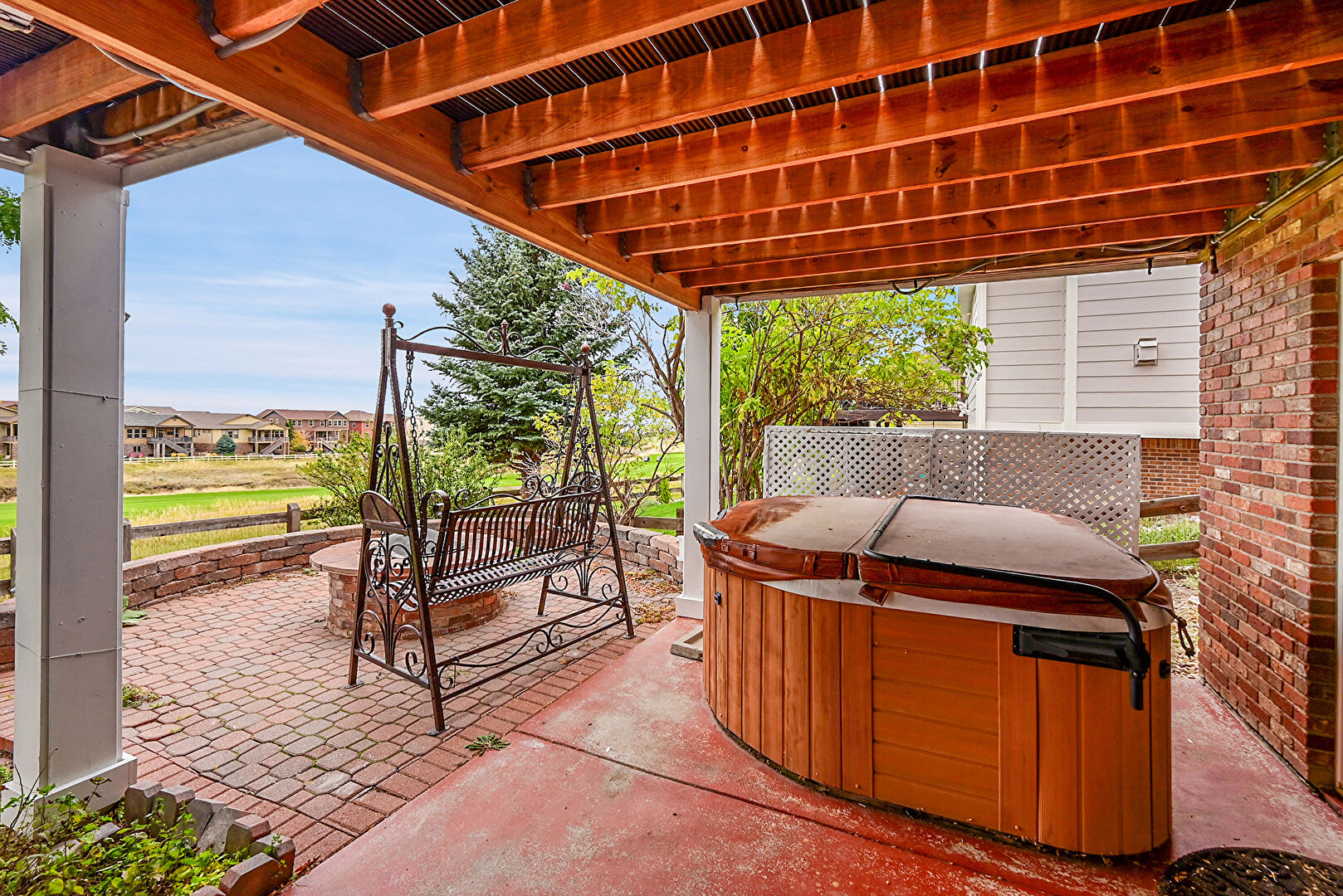 Deck, Fence, Grill, Hot Tub, Lawn, Patio, Residential View, Stairs, Fence, Patio, Residential View