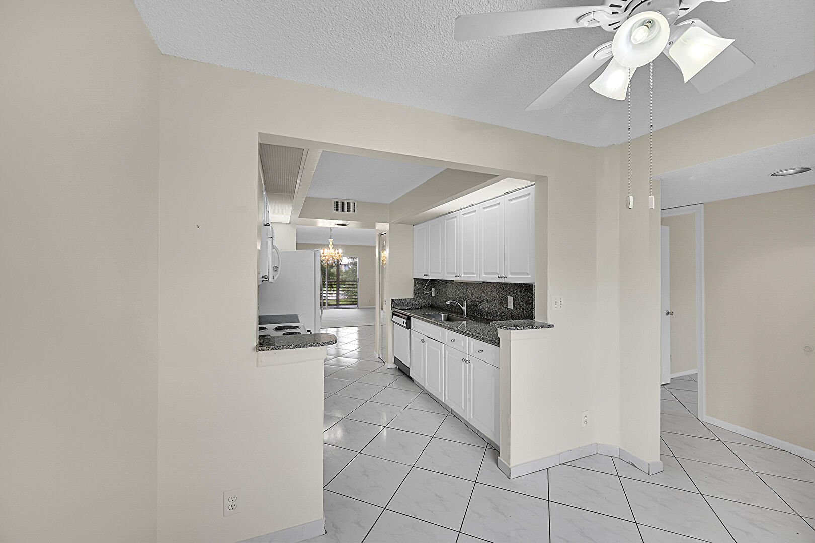 Baseboards Wall, Ceiling Fan, Drywall, Galley Kitchen, Natural Light, Notable Chandelier, Pendant Lighting, Raised Cabinets, Stone Countertops, Textured Ceiling, Tile Floor, Vent, Ceiling Fan, Drywall, Textured Ceiling, Vent