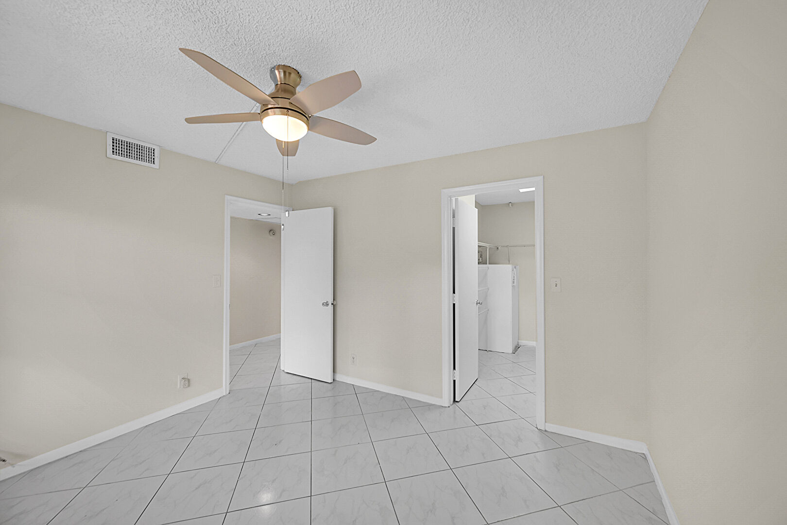 Baseboards Wall, Ceiling Fan, Drywall, Ensuite Bathroom, Natural Light, Textured Ceiling, Tile Floor, Vent, Washer Dryer, Drywall, Tile Floor