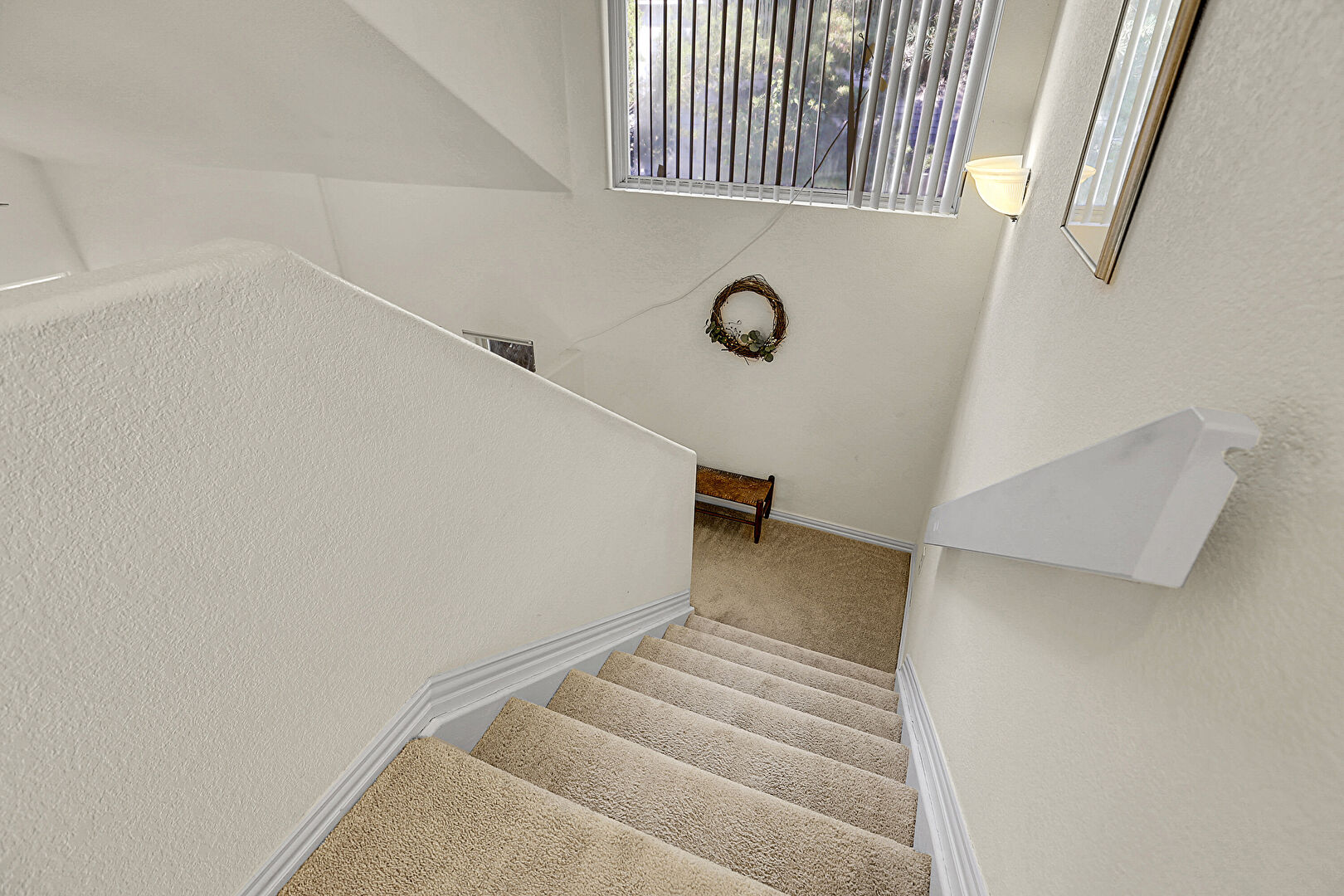 Baseboards Wall, Carpet, Natural Light, Textured Wall, Stairs