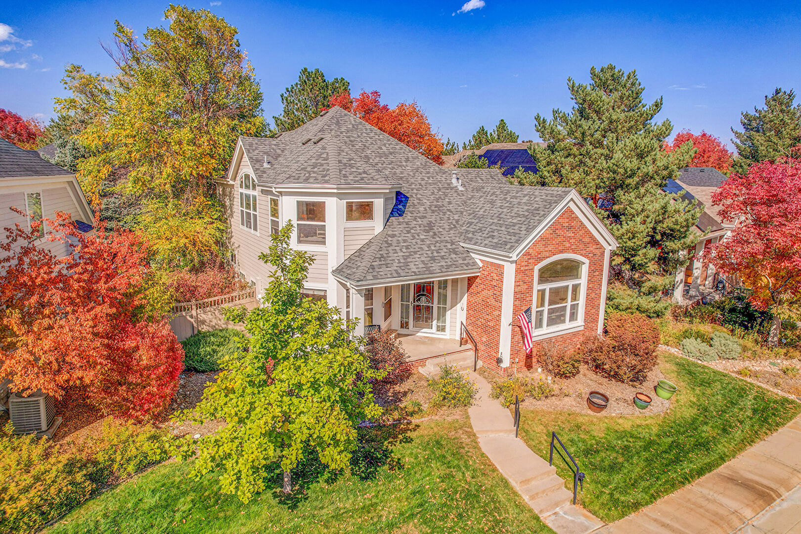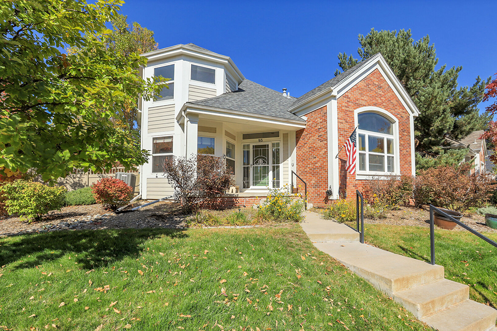 Brick Siding, Central Ac, Downspout, Fence, Gutters, Horizontal Siding, Lawn, Porch, Shingle Roof, Stairs, Fence, Horizontal Siding, Porch