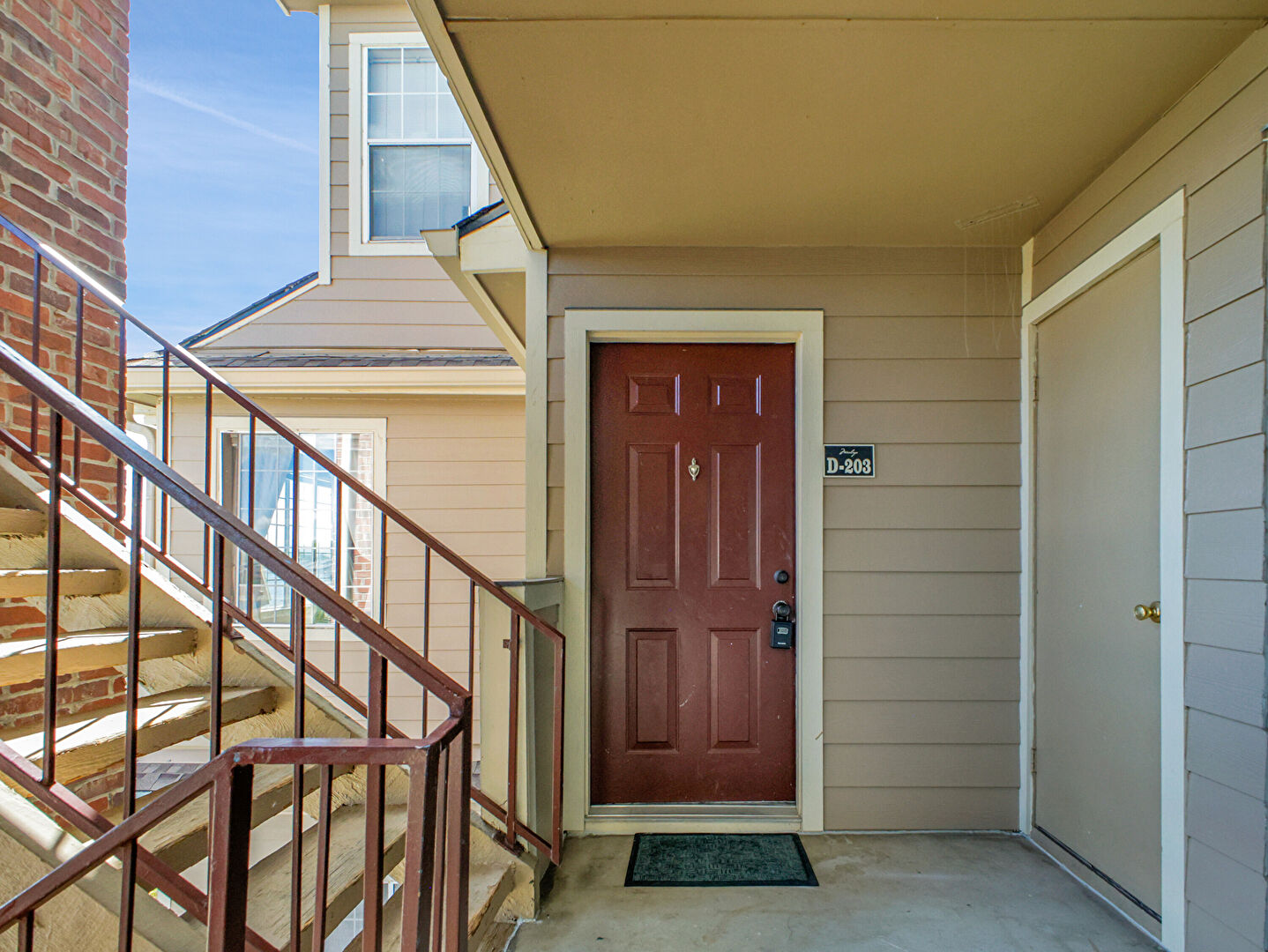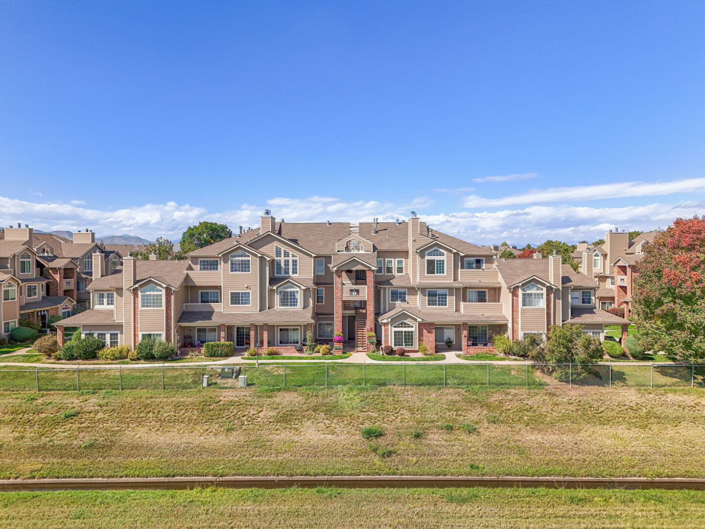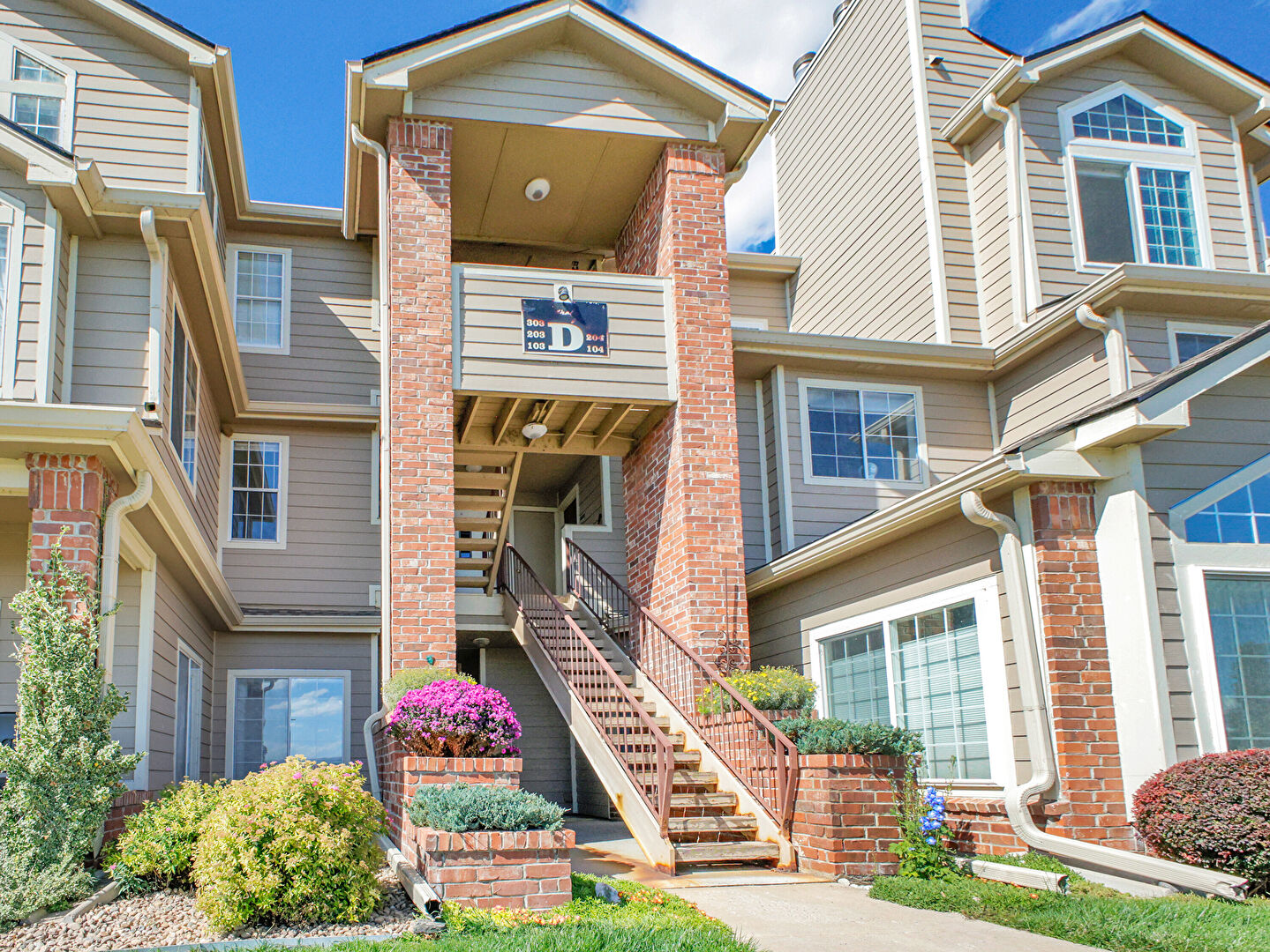 Balcony, Brick Siding, Chimney, Downspout, Fence, Gutters, Horizontal Siding, Lawn, Mountain View, Parking Lot, Residential View, Stairs, Horizontal Siding, Lawn, Residential View, Stoop