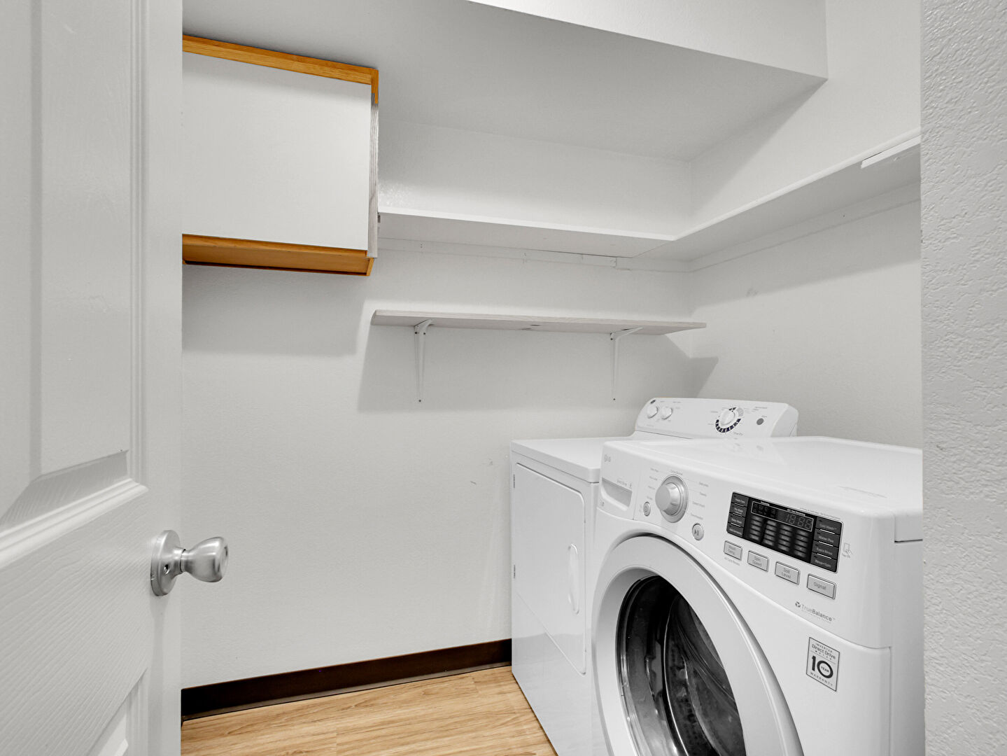 Baseboards Wall, Laundry, Wood Finish Floor, Drywall