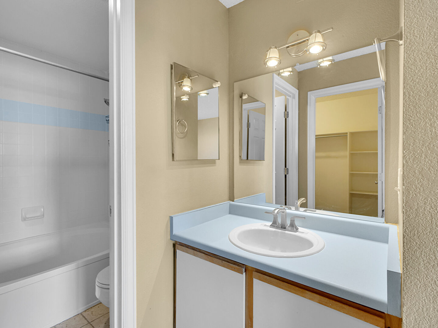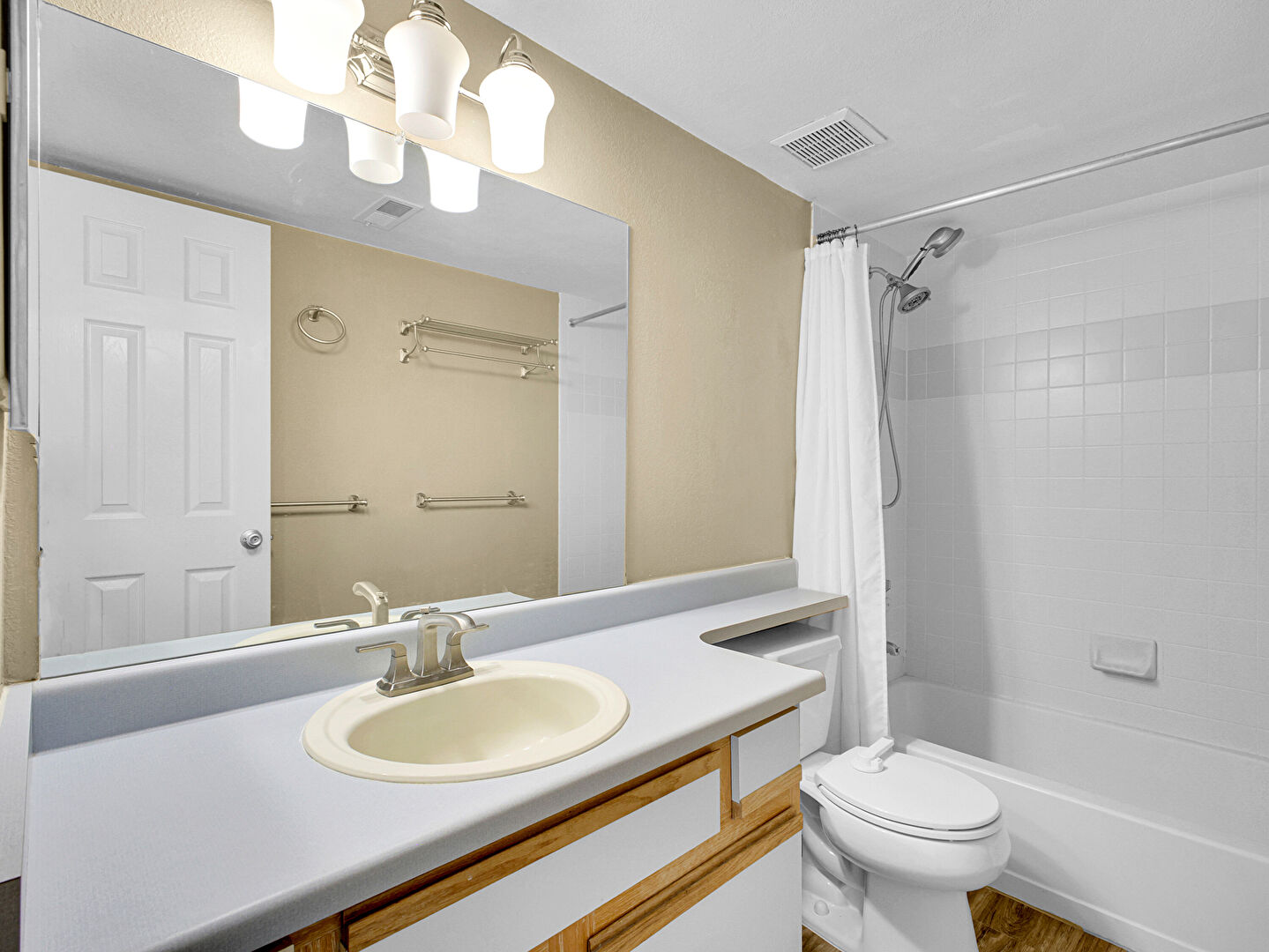 Combined Bath Shower, Drywall, Full Bathroom, Vanity, Vent, Walk In Closet, Wood Finish Floor, Drywall, Tile Floor, Vanity