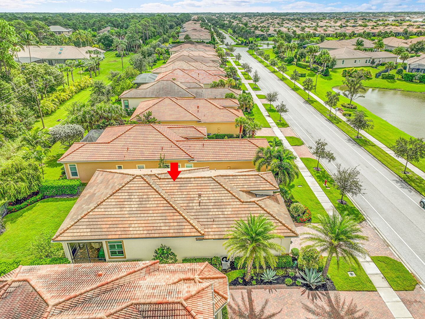 Downspout, Driveway, Gutters, Lawn, Stone Siding, Stucco Siding, Tile Roof, Woods View, Driveway, Gutters, Lawn, Stucco Siding